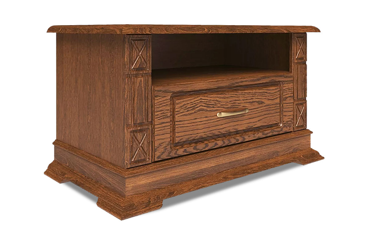 Миниатюрная тумба под ТВ из коллекции «Верди Люкс» подойдет для небольших квартир. Удобная высота позволит комфортно смотреть телевизор, а открытая ниша – поставить сопутствующую технику. В выдвижной ящик Вы сможете положить диски и разную мелочь, которую хочется спрятать от посторонних глаз.