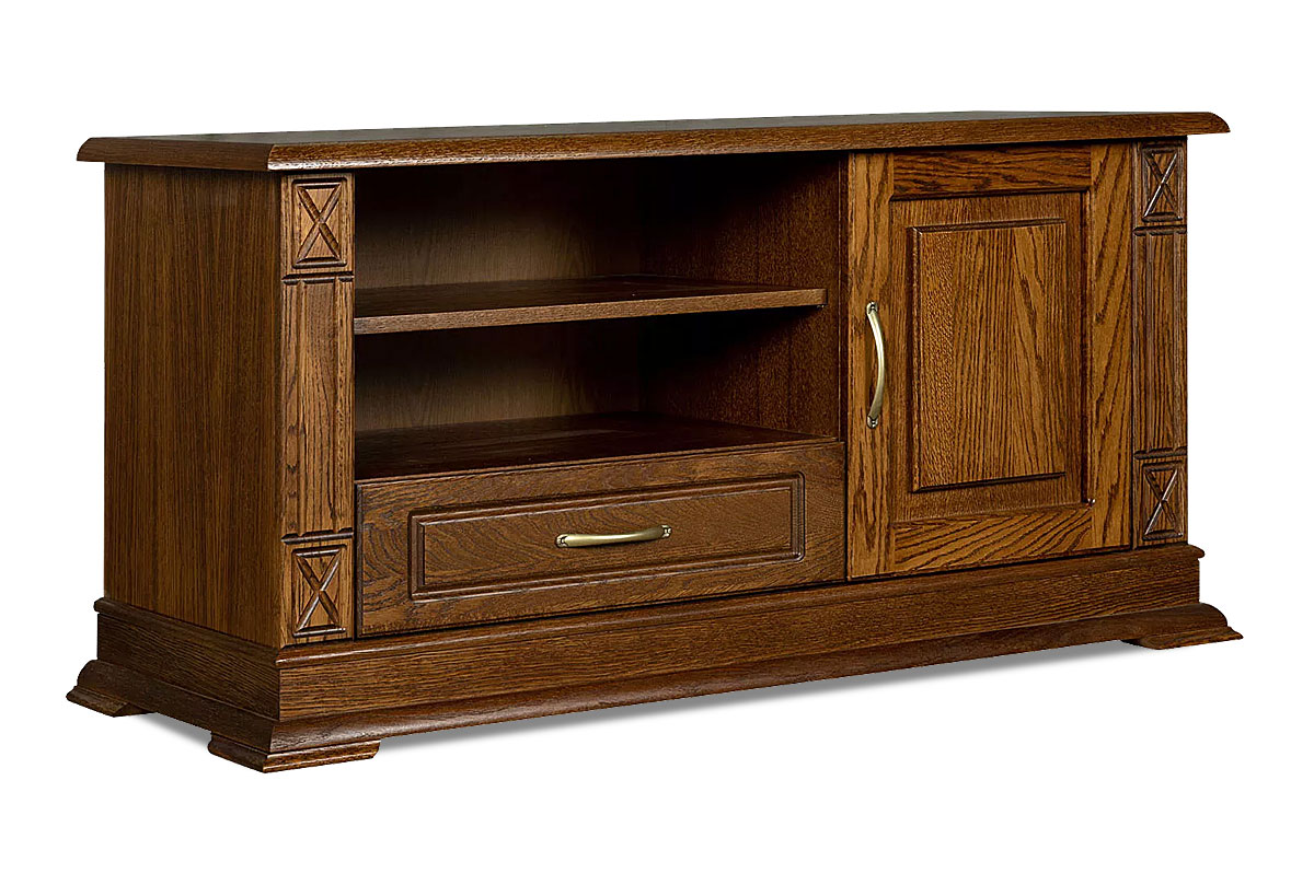 Тумба под ТВ «Верди Люкс» ТВ4. Натуральная мебель из массива дуба для гостиной в классическом стиле. Размеры: 1248 х 614 х 477 мм.