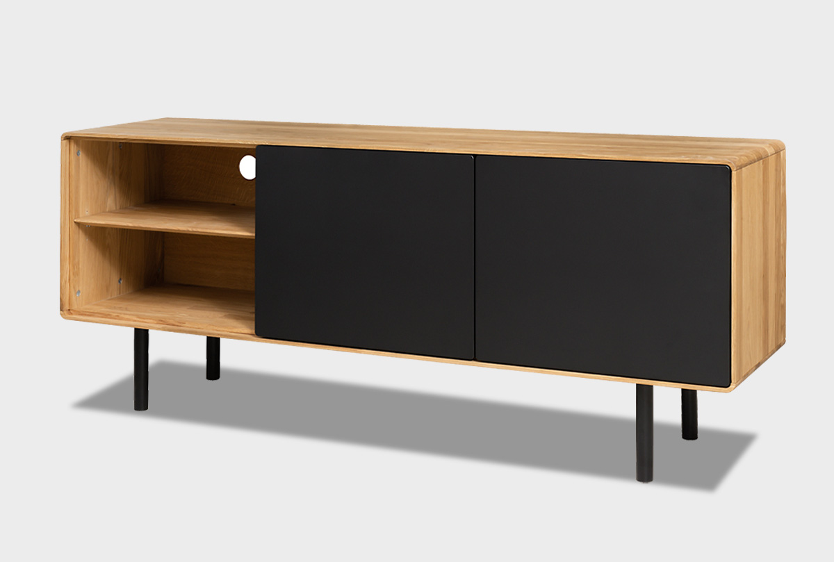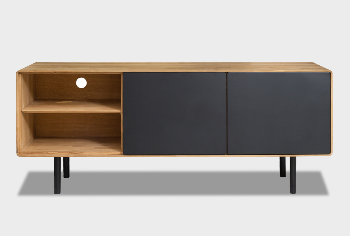 Тумба под ТВ высокая "Норман" 3 с нишей (левая), дуб натуральный, чёрный, (.Г000075113)