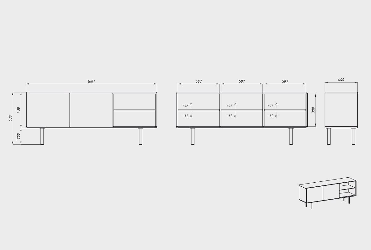 Тумба под ТВ высокая "Норман" 3 с нишей (правая), дуб натуральный, чёрный, (.Г000075110)