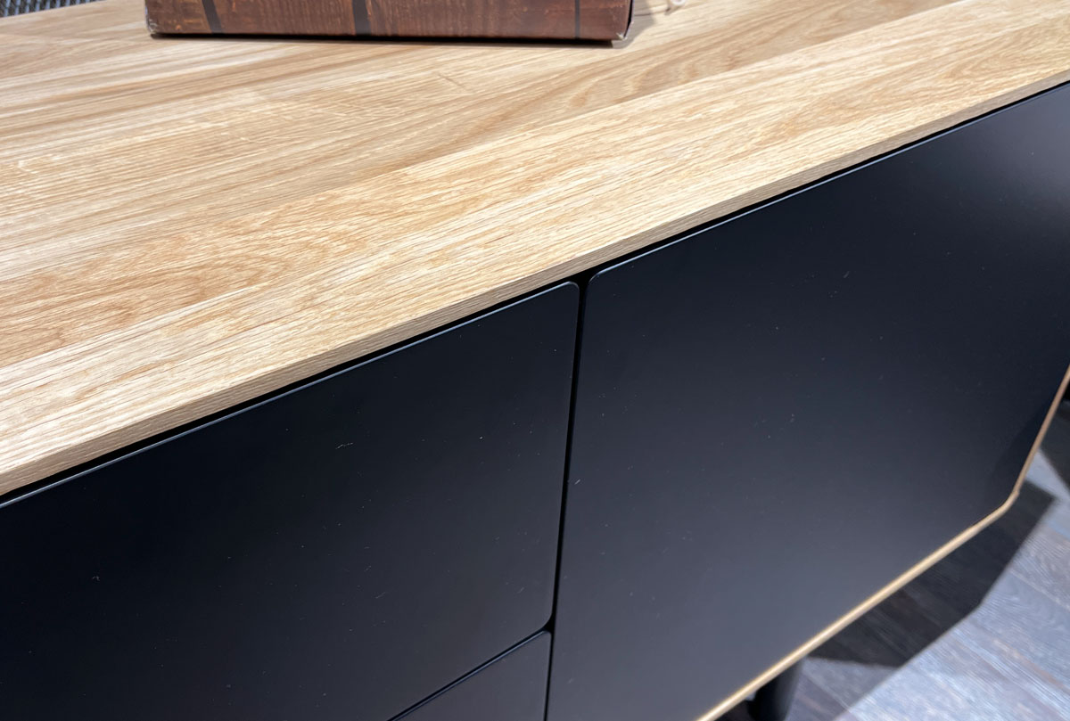 Тумба под ТВ высокая "Норман" 3 (с ящиками), дуб натуральный, чёрный, (.Г000073698)