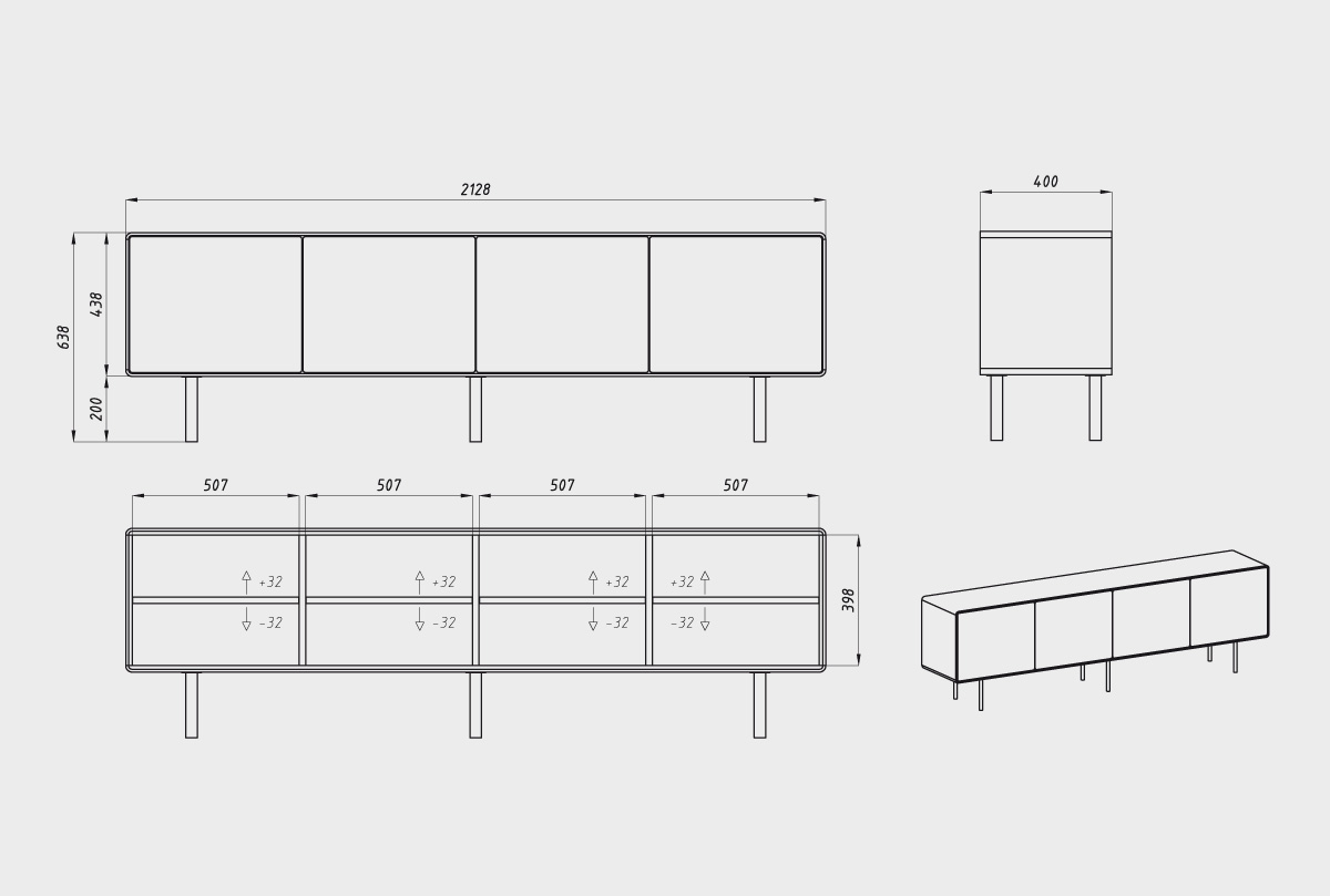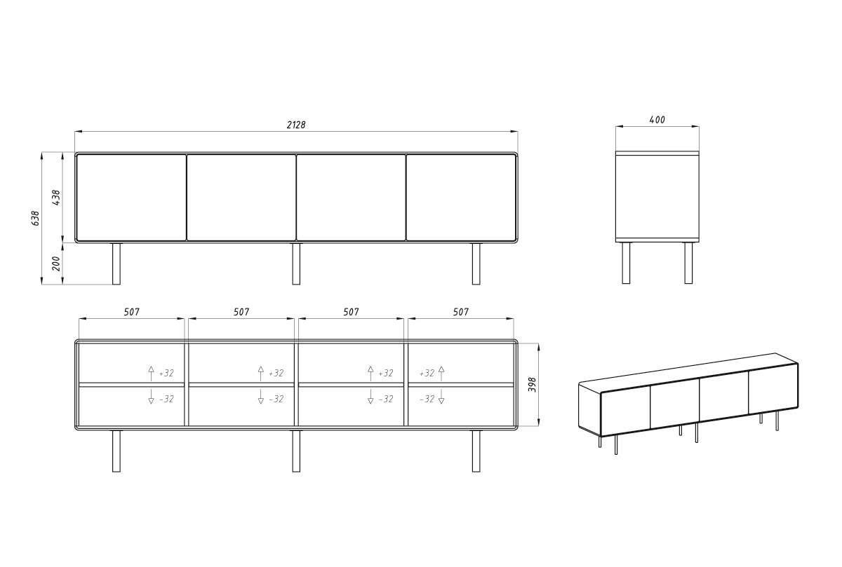 Тумба под ТВ высокая "Норман" 4, дуб натуральный, чёрный, (.Г000073682)