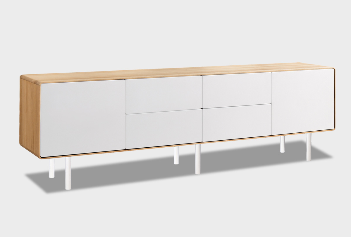 Тумба под ТВ высокая "Норман" 4 (с ящиками), дуб натуральный, белый, (.Г000073683)