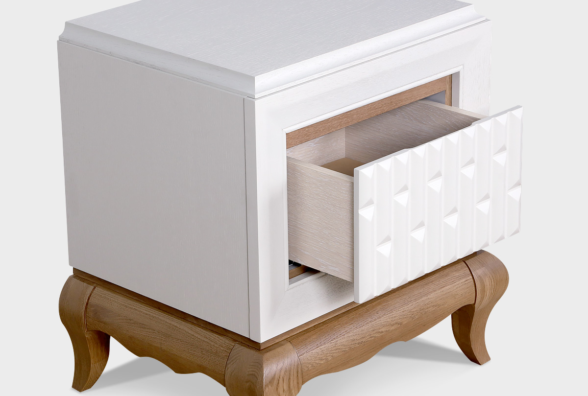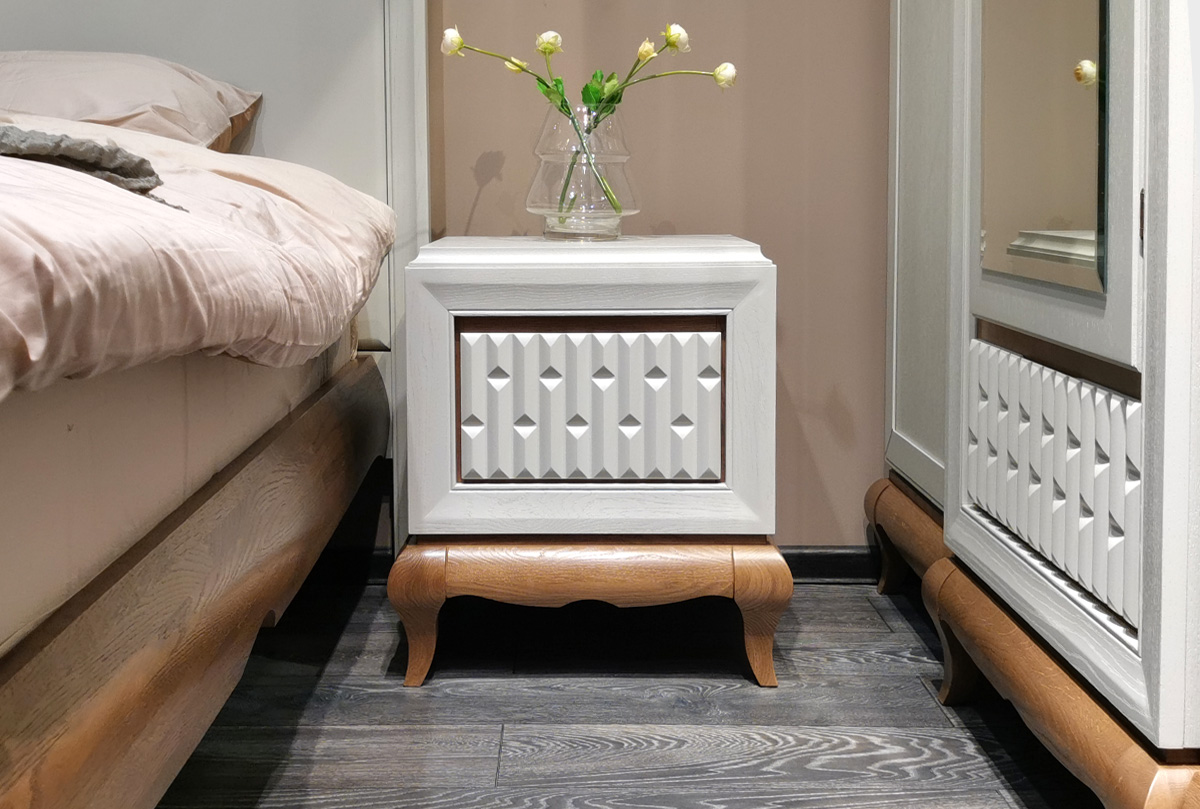 Тумба прикроватная «Армония» — изящная точка опоры в интерьере спальни, объединяющая эстетику, практичность и теплоту ручной работы.