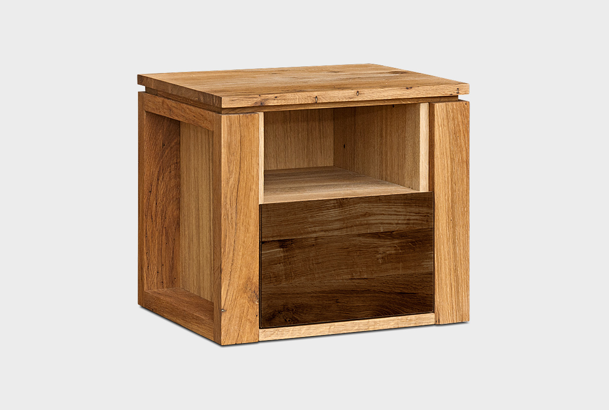 Прикроватная тумба «Берген» В в цвете «бейц-масло, графит» олицетворяет потрясающую строгую природу северного края. Она сделана из дубовых брусков, нарочито не подобранных по рисунку. Поверхность тумбы стильная, гладкая за счет обработки древесины бейц-маслом: оно защищает дерево от загрязнений, одновременно позволяя ему «дышать». Декоративная обкладка на торцах тумбы является характерной чертой изделий коллекции, маркированных буквой «В» и позволяет оригинально сочетать их между собой. Ящики оснащены направляющими полного выдвижения, что гарантирует удобство в ежедневном использовании. Купив прикроватную тумбу Берген из натурального дерева, вы сделаете неоценимый вклад в здоровье близких и дорогих вам людей.