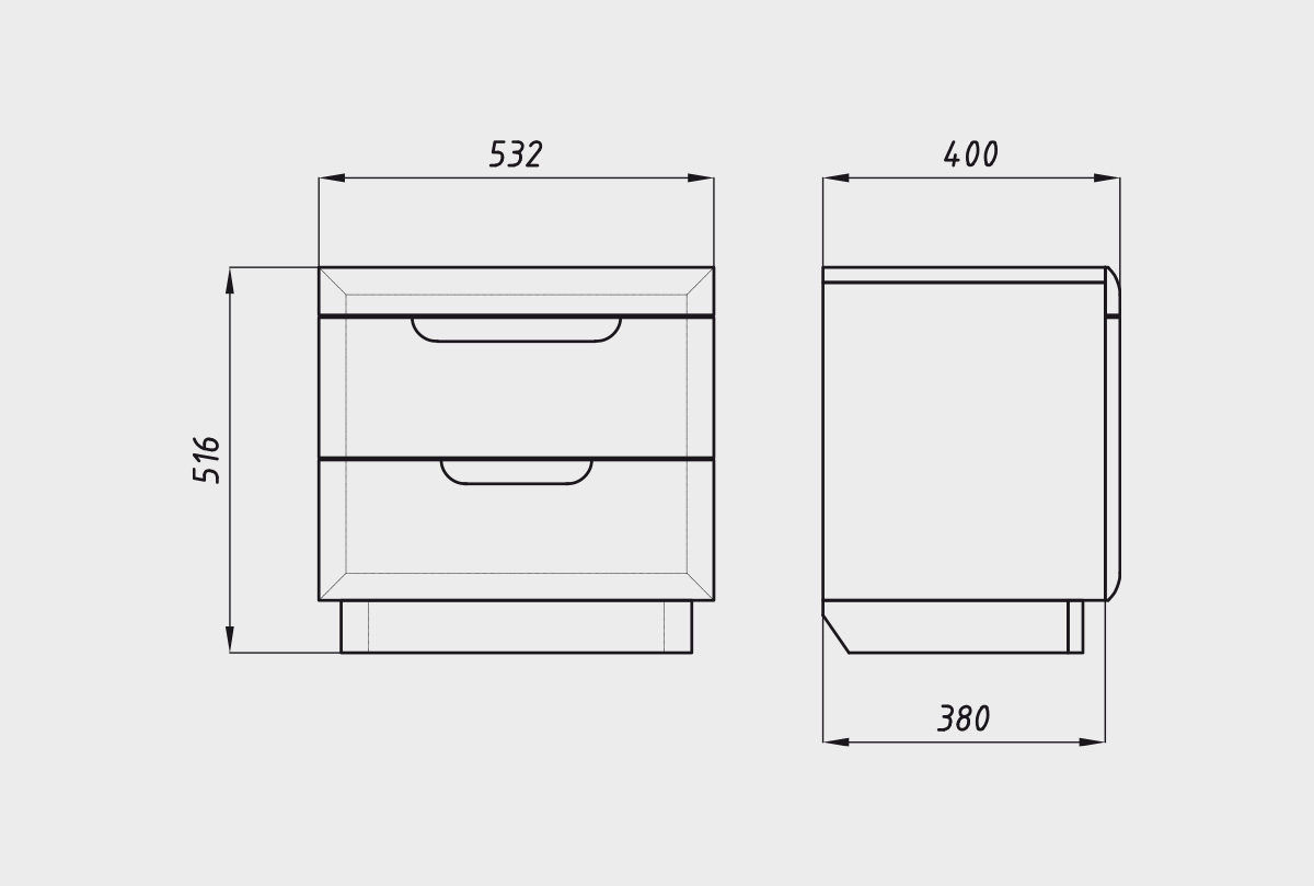 ✅ Компактные габариты: ширина 532 мм, высота 516 мм, глубина 400 мм — идеальны даже для небольших спален.