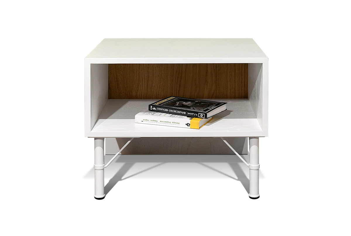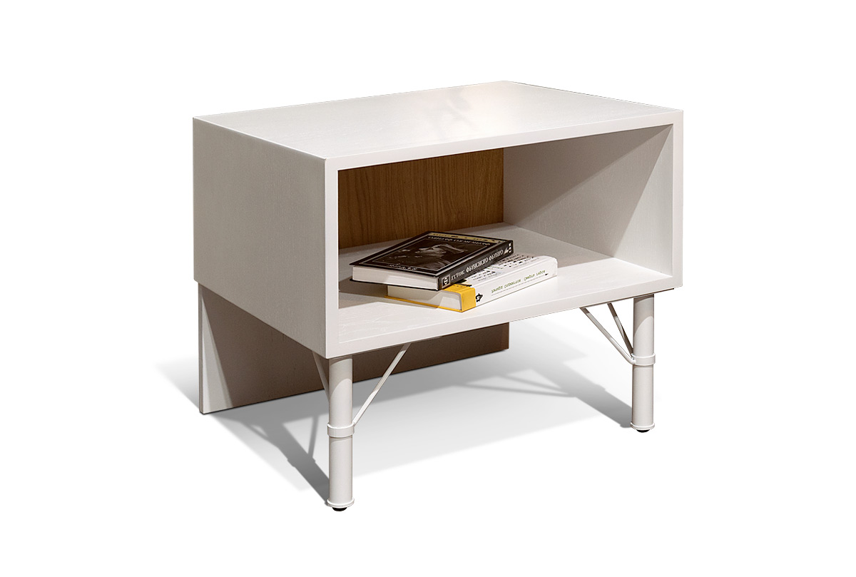 Тумба прикроватная "Extera" с нишей; белый, натуральный дуб, белый металл