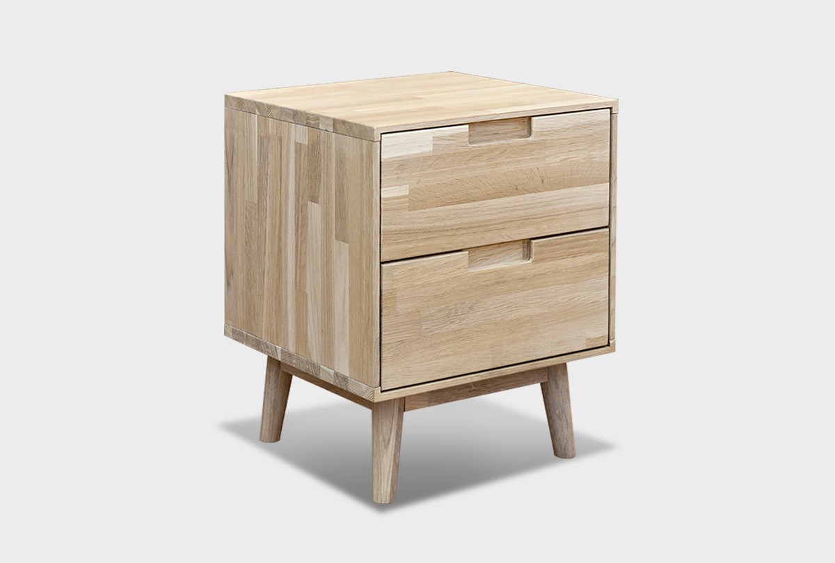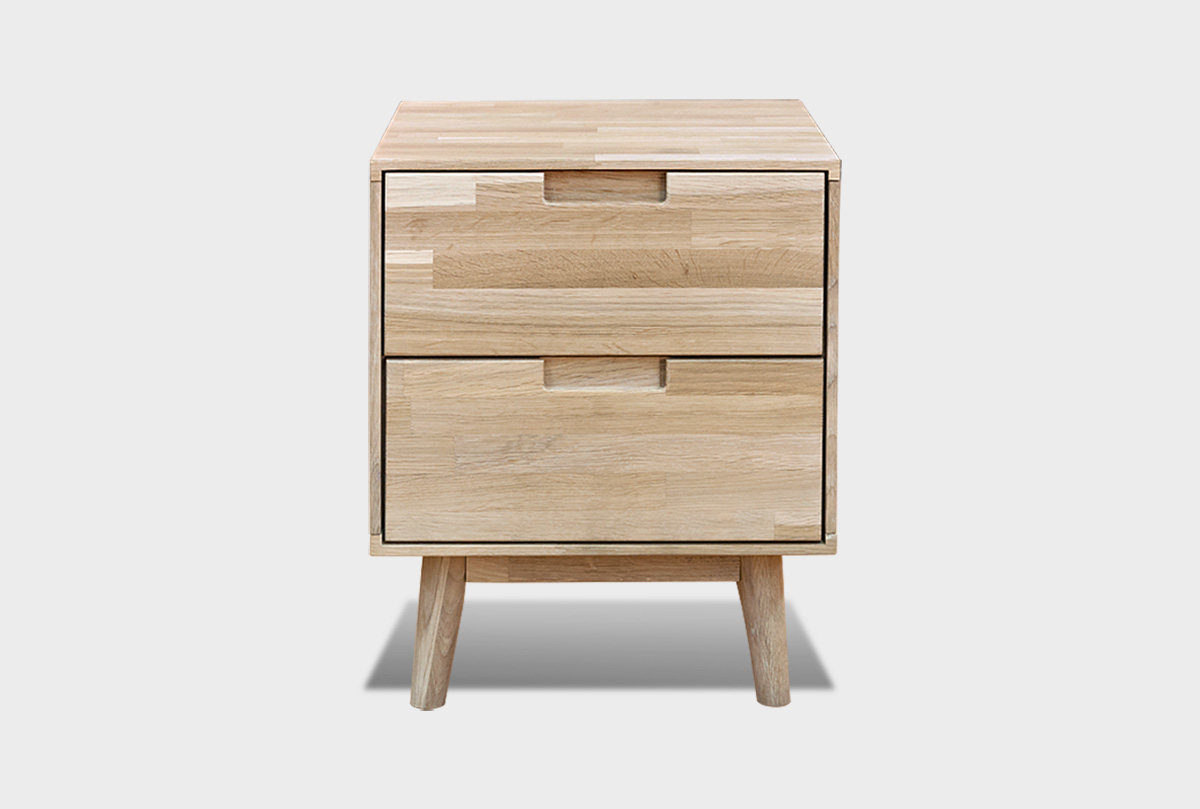 Прикроватная тумба «Ирвинг» продолжает эстетику коллекции в духе Mid-century modern. Лаконичная геометрия корпуса и утончённые скошенные ножки придают конструкции визуальную лёгкость. Благодаря использованию массива дуба с выразительным природным рисунком и экологичным покрытием, тумба становится уникальным предметом интерьера.