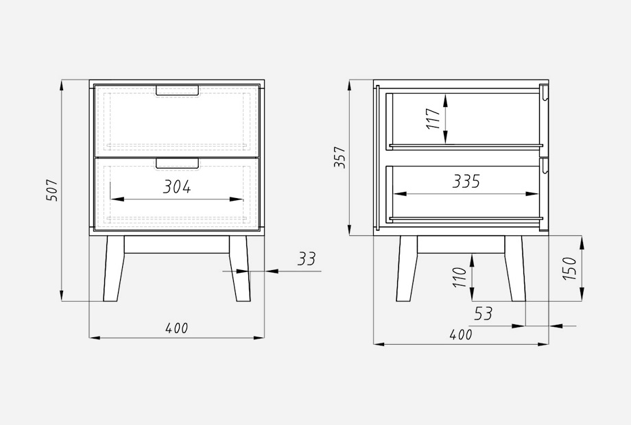 Схема тумбы прикроватной "Ирвинг":