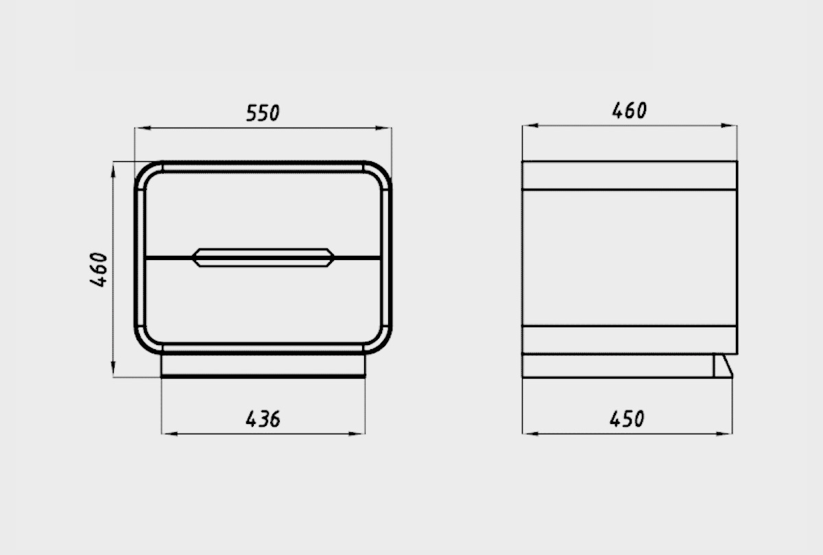 ✅ Тумба имеет два удобных ящика с утопленными фасадами и графическими профиль-нишами, которые обеспечивают удобное открывание без выступающих ручек.
