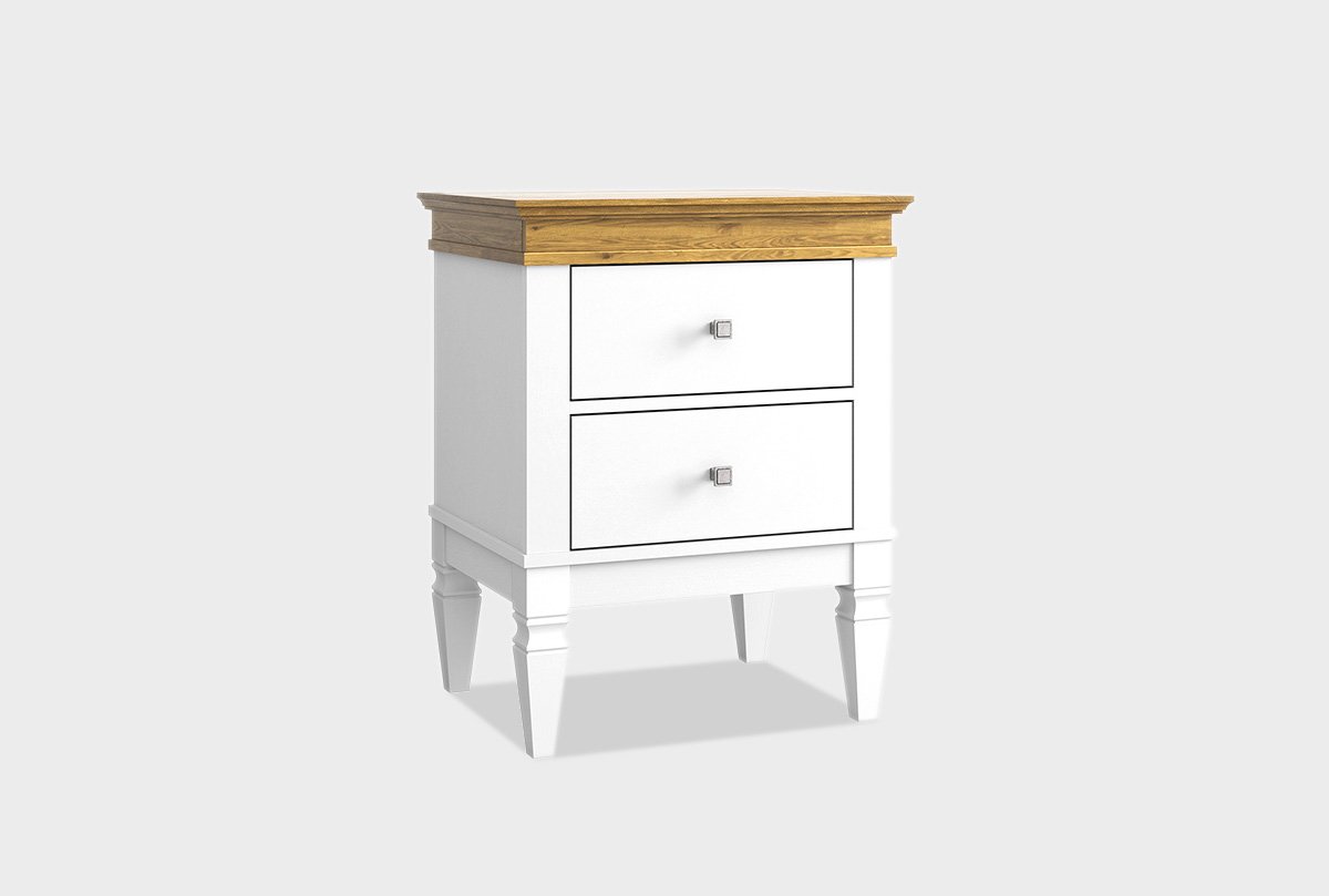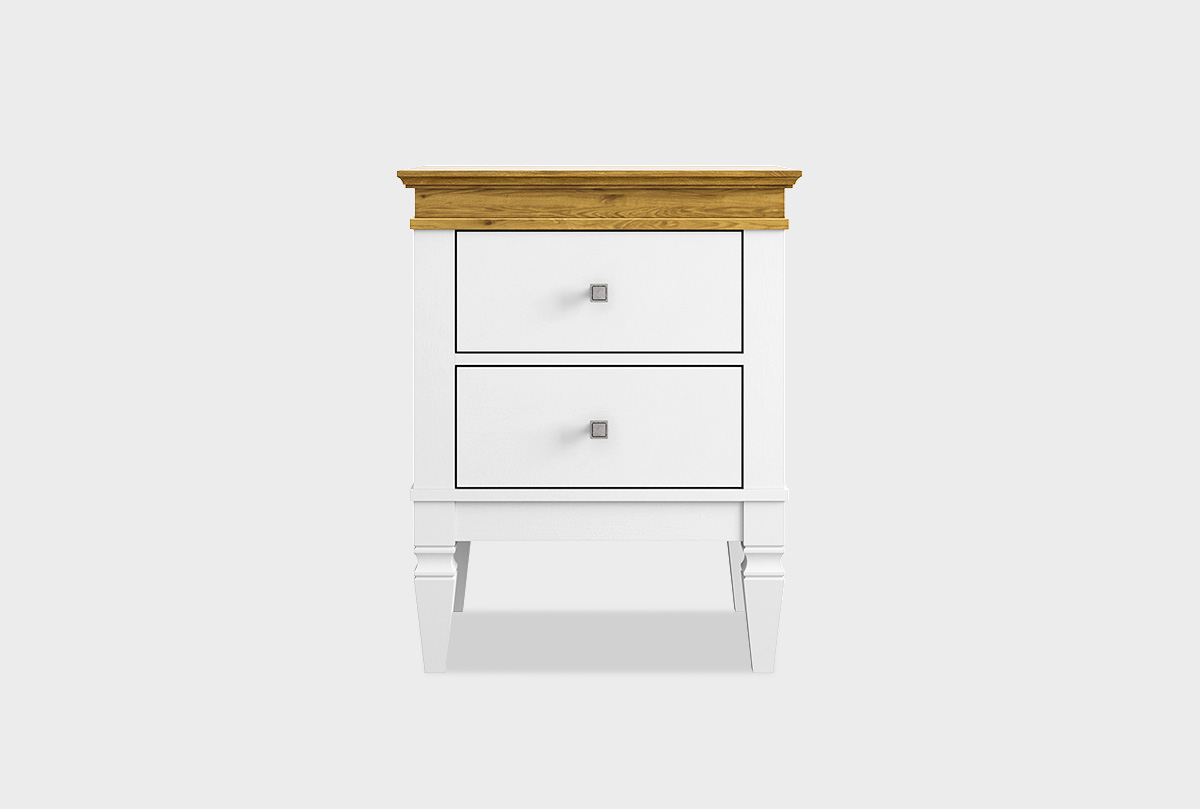 Тумба прикроватная «Ольса-С» 02 в цвете «белый лак+антик 24» выполнена из благородного массива сосны. Красота тумбы в её искренней простоте и природном очаровании. Это не броская роскошь, а тёплая, дышащая эстетика натурального дерева. Мягкие переливы сосновой текстуры, проявленные матовым покрытием, создают умиротворяющий и тактильно приятный образ. Оснащена двумя выдвижными ящиками и удобной поверхностью для ночника.