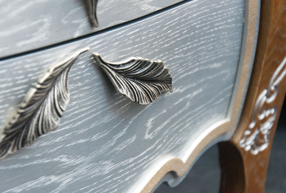 Все мы знаем, как важно окружать себя красивыми вещами. Особенно это касается нашего дома, ведь там мы проводим большую часть своей жизни. Прикроватная тумба из коллекции «Трио» в цвете «коньяк с серебряной патиной+серебро» украсит Вашу спальню и создаст в ней хорошее настроение. Объемные 3D-фасады, декоративная резьба и фурнитура в виде лепестков делают эту тумбу Trio маленьким произведением искусства. В выдвижные ящики, дно которых отделано велюром, поместятся Ваши личные вещи, а удобная высота тумбы позволит разместить на ней светильник, книги или журналы.