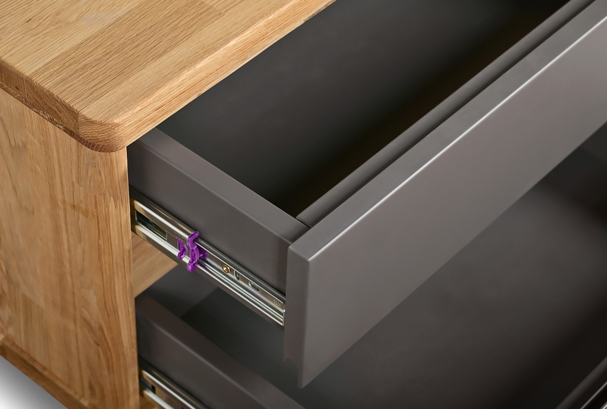✅ Ящики оснащены надежными шариковыми направляющими с доводчиками, которые обеспечат плавное и бесшумное закрывание.