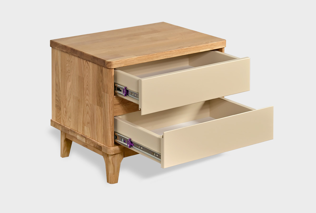✅ Тумба изготовлена из комбинации материалов - массива дуба и эмали. Из массива дерева изготовлен корпус тумбы.