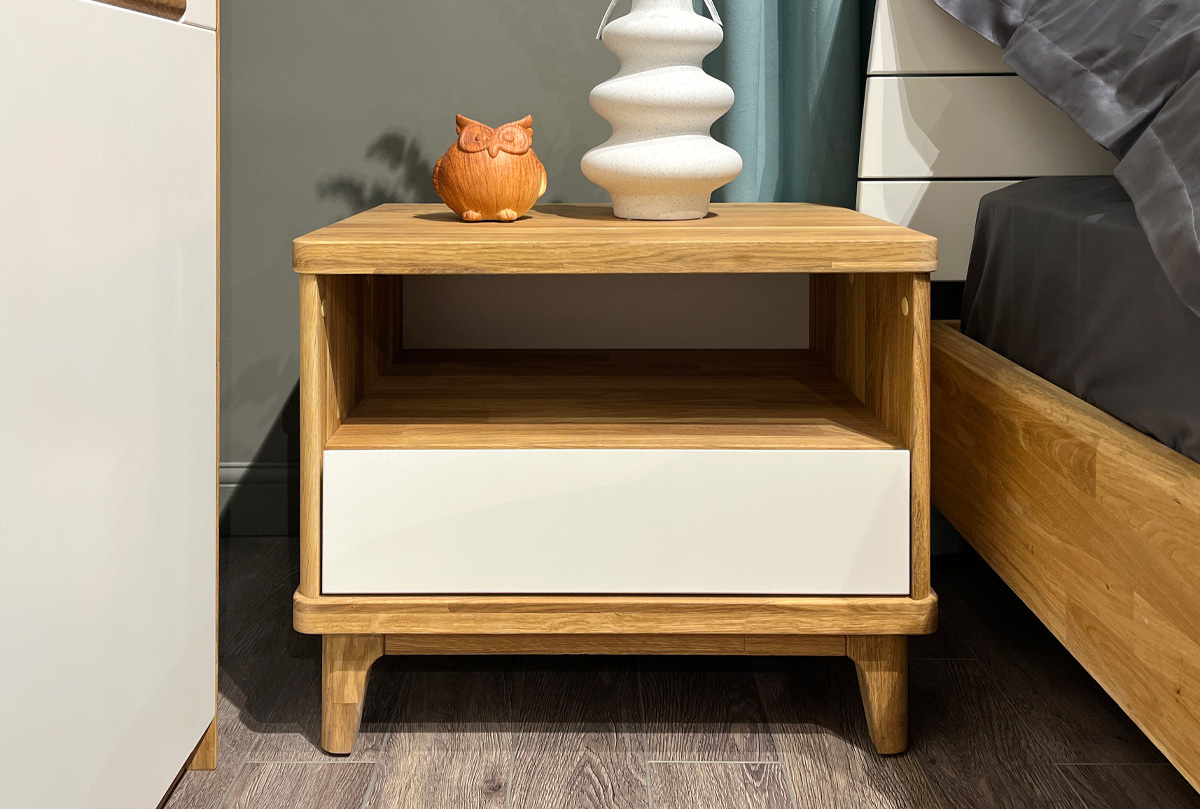 ✅ Тумба изготовлена из комбинации материалов - массива дуба и эмали. Из массива дерева изготовлен корпус тумбы..