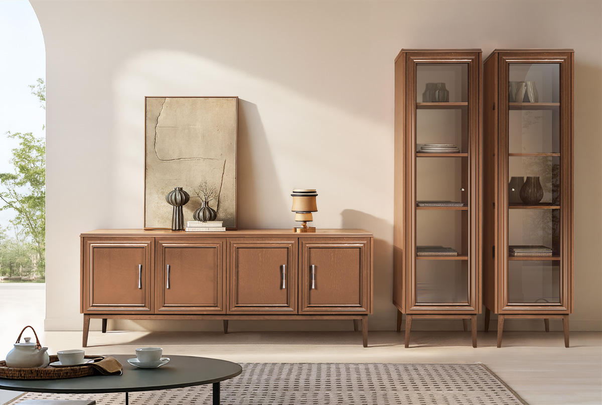 ✅ Сочетание глубоких эмалевых оттенков крашения с натуральной текстурой дерева оттенка орех.