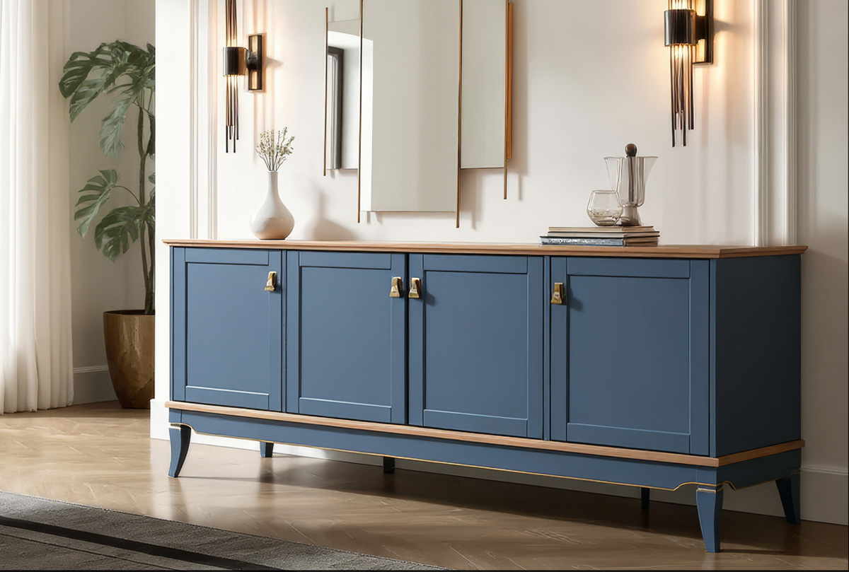 Четырехдверная тумба «Стюарт» для Вашей гостиной в классическом стиле, 1941 х 822 х 470 мм, в цвете "марено, натуральный дуб".