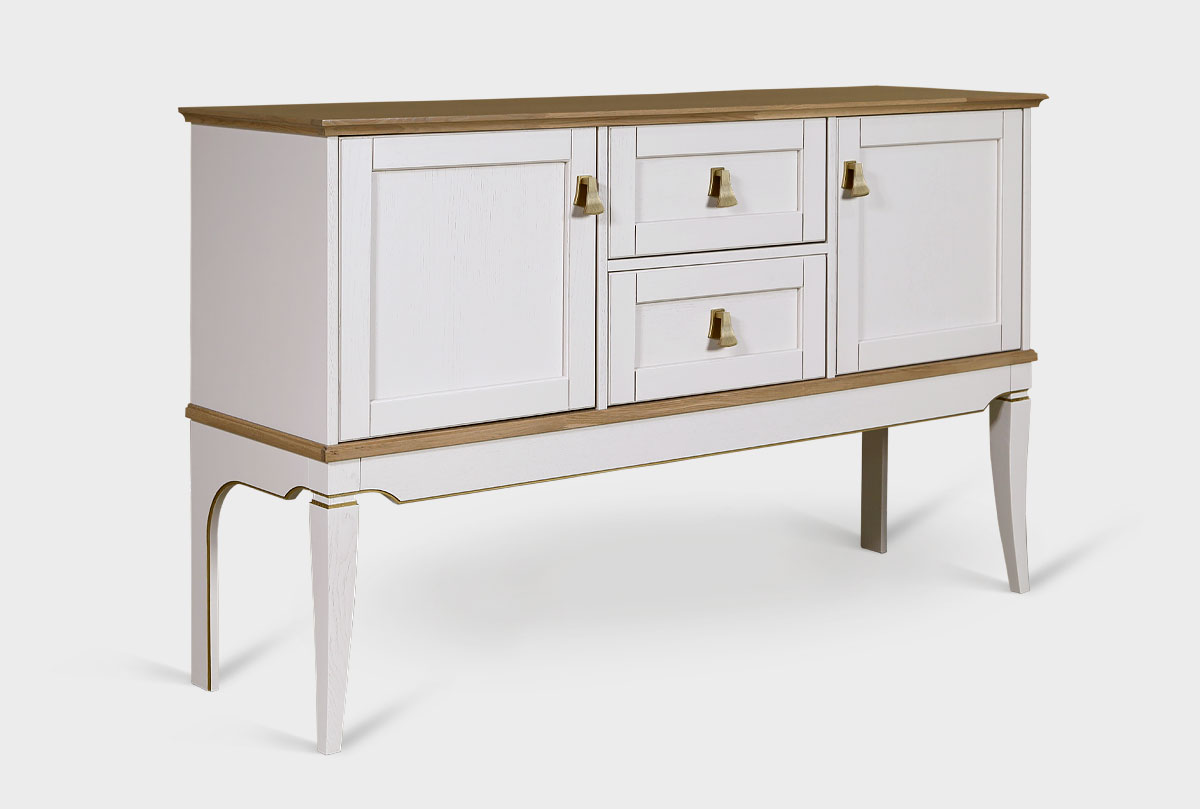 Тумба «Стюарт» для Вашей гостиной в классическом стиле, 1481 х 925 х 420 мм, в цвете "персидский жемчуг, натуральный дуб".