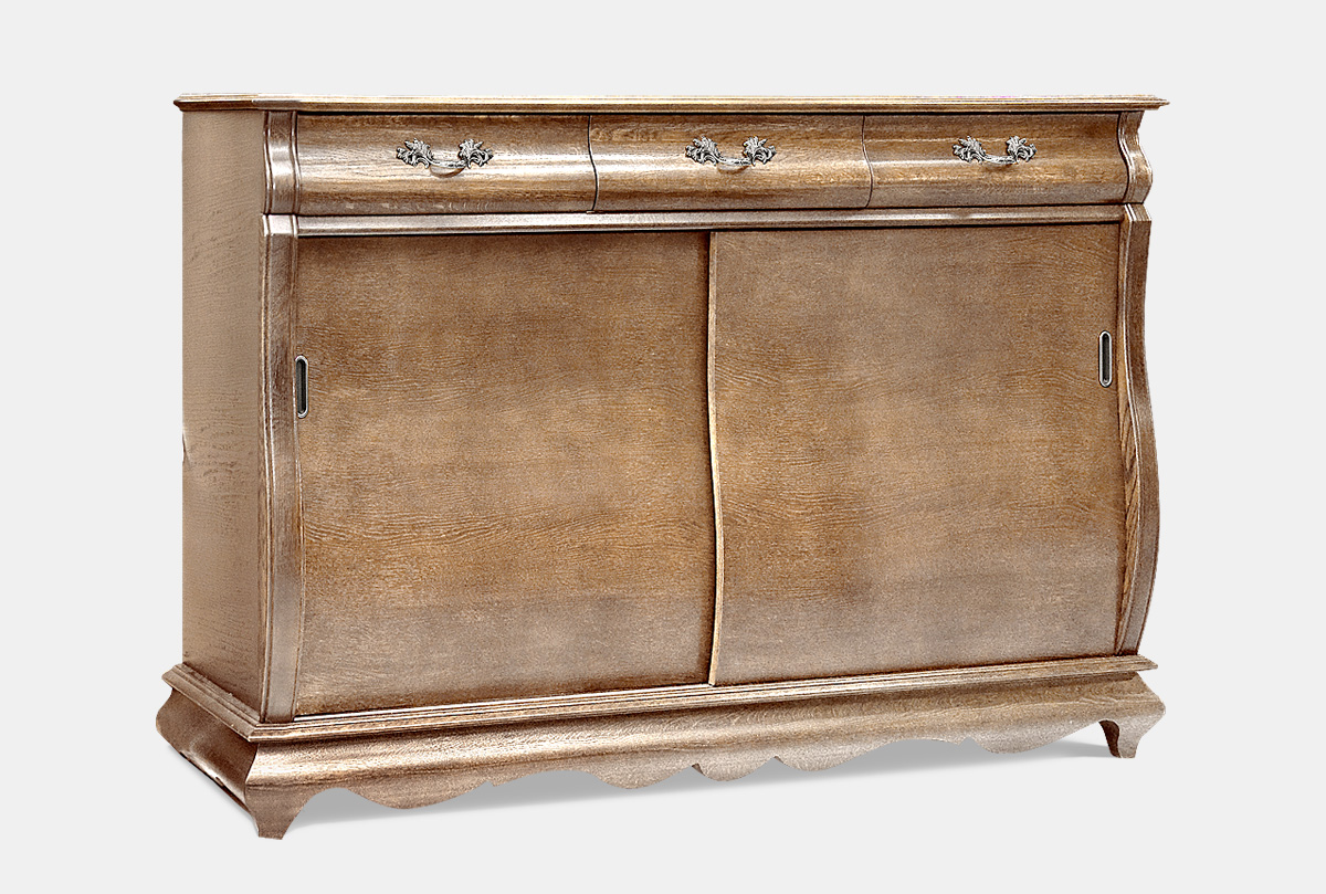 Вместительная и удобная тумба-купе 07 из коллекции «Тэфи» в цвете «классик» – это характерный штрих, придающий аристократичность любому стилю интерьера. Для ее изготовления используют массив благородного дуба. Неповторимый рисунок дерева приобретает особенную живописность благодаря изогнутым контурам тумбы. Достойным дополнением к этому великолепию является изысканная фурнитура, выполненная из золота и черненного серебра, и велюр насыщенного однотонного оттенка, которым отделано дно выдвижных ящиков.