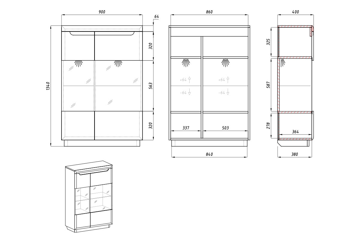 ✅ Внутри — регулируемые по высоте полки и закрытые секции, что позволяет адаптировать хранение под свои задачи.