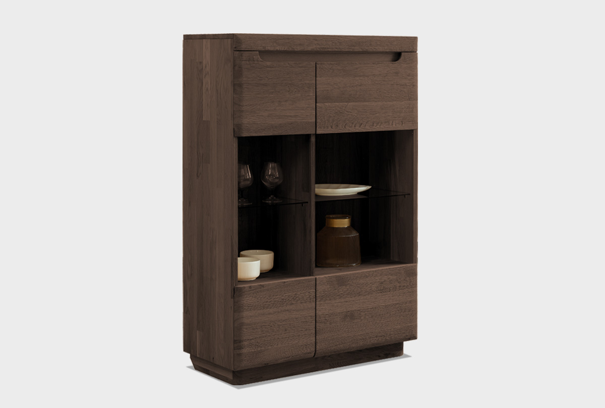 Эта тумба гармонично впишется в гостиную или кабинет. Стеклянные фасады делают её идеальной для демонстрации декора или посуды. Особенно эффектно смотрится на фоне светлых стен, природных тканей и тёплого рассеянного света.