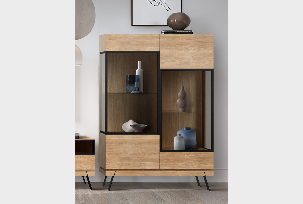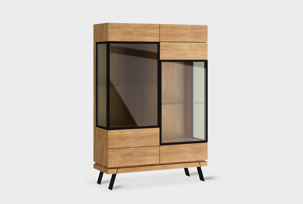 Высокая тумба в гостиную «Этна» без декора (стекло) из дуба в цвете дуб натуральный в стиле Лофт.