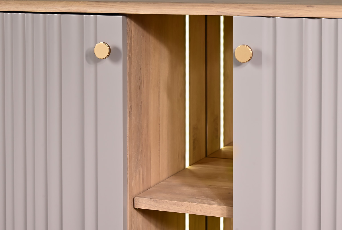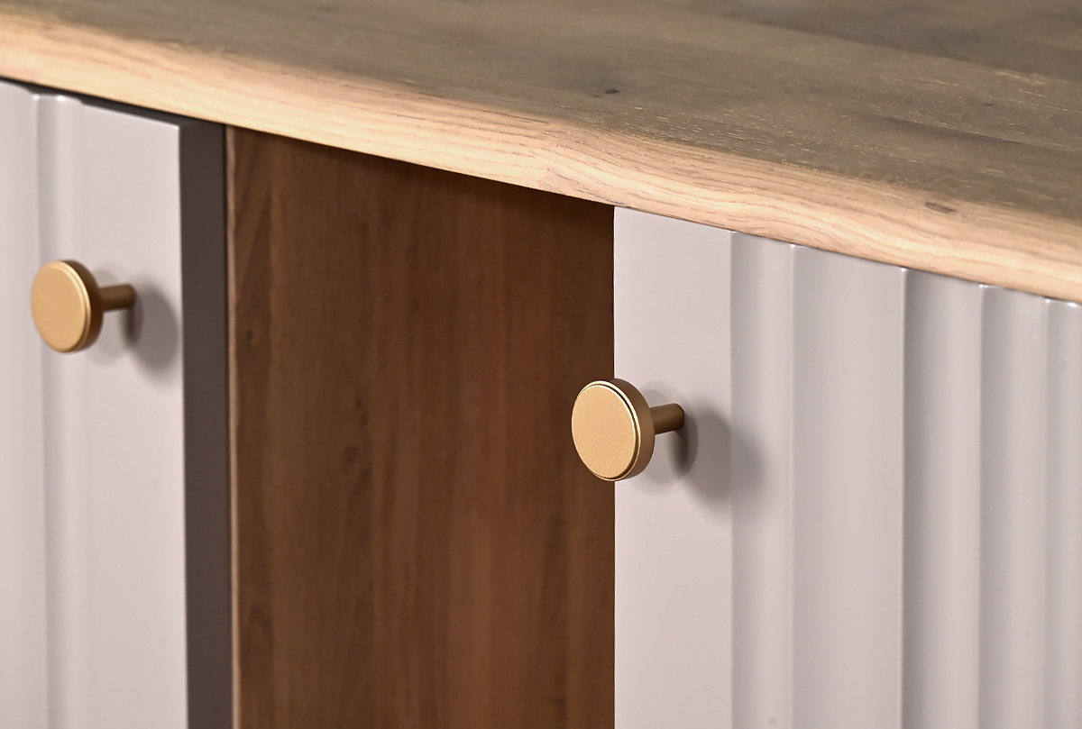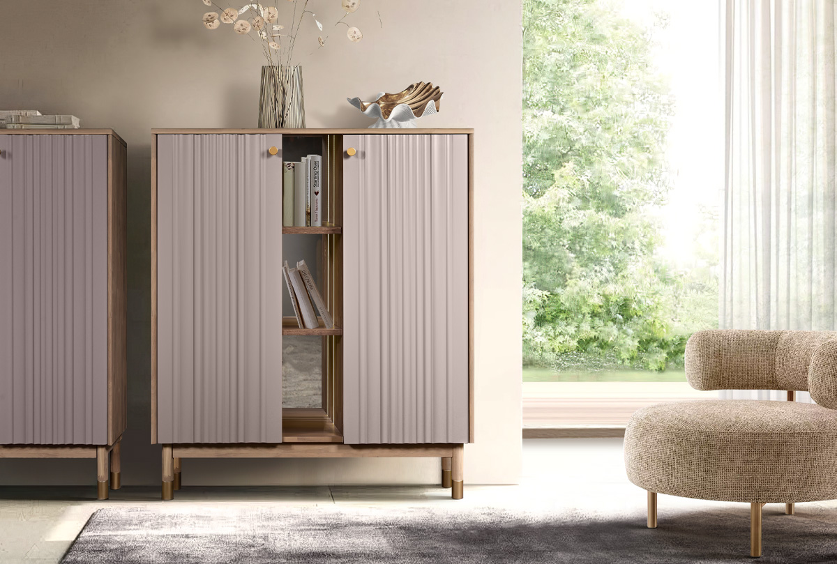 Коллекция «Меридиан» — это диалог между искусством и функциональностью. Лёгкие, текучие фасады с волнообразной фрезеровкой, высокие ножки и утончённая позолоченная фурнитура придают мебели лёгкость и ритм. Она словно оживляет пространство, наполняя его эстетикой и гармонией. Это мебель, в которую хочется всматриваться и к которой приятно прикасаться.