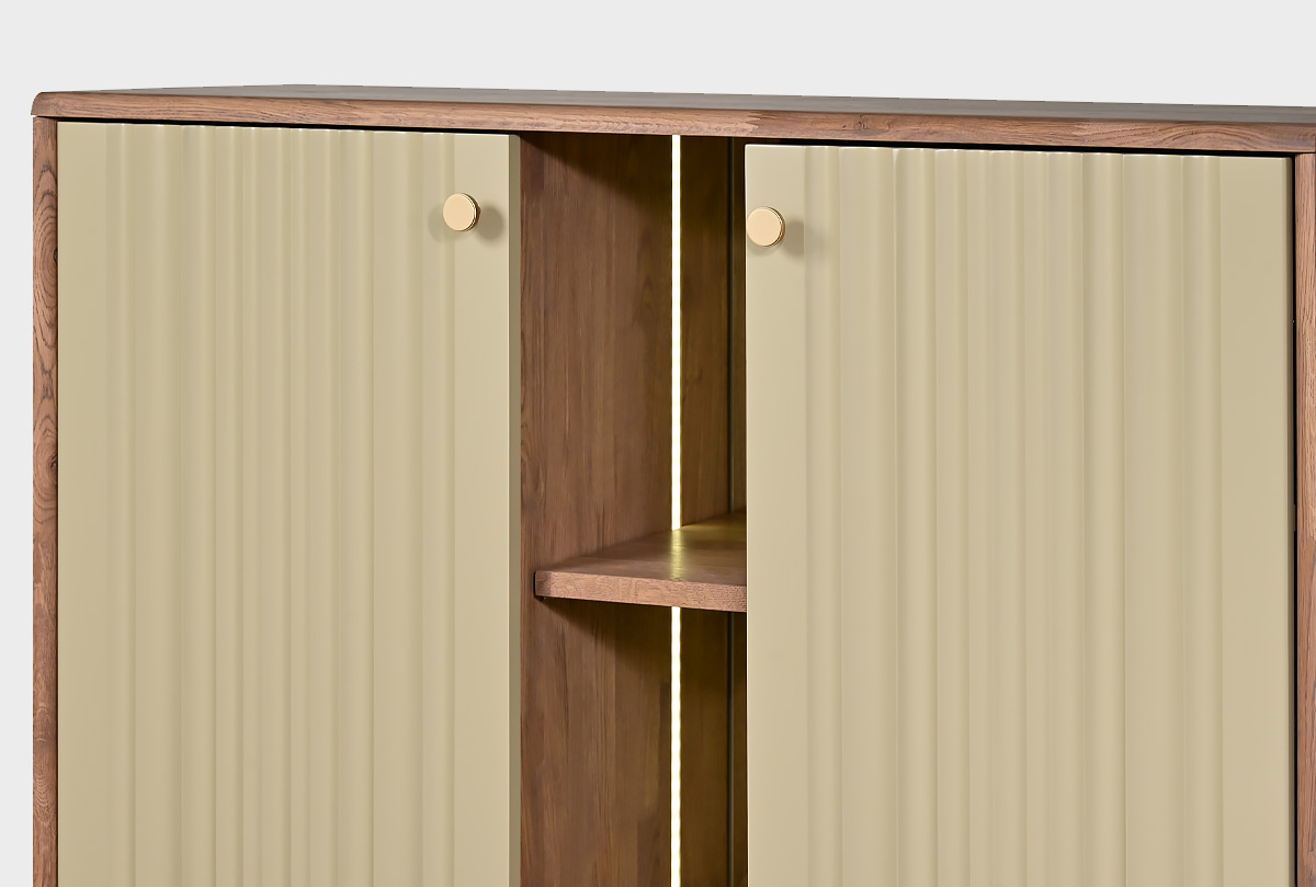 Коллекция «Меридиан» — это диалог между искусством и функциональностью. Лёгкие, текучие фасады с волнообразной фрезеровкой, высокие ножки и утончённая позолоченная фурнитура придают мебели лёгкость и ритм. Она словно оживляет пространство, наполняя его эстетикой и гармонией. Это мебель, в которую хочется всматриваться и к которой приятно прикасаться.