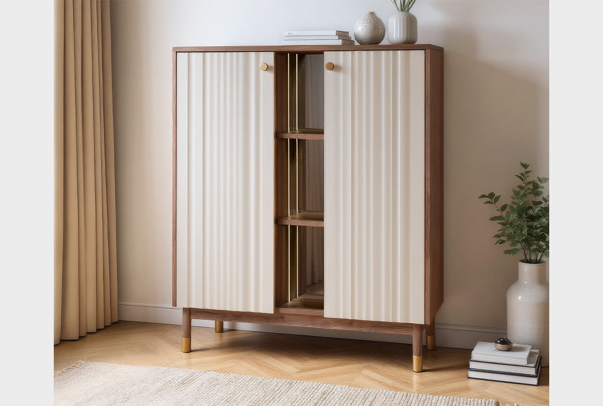 ✅ Функциональное внутреннее наполнение, за каждой распашной дверью расположены съемные полки, которые позволяют разместить посуду или элементы декора.