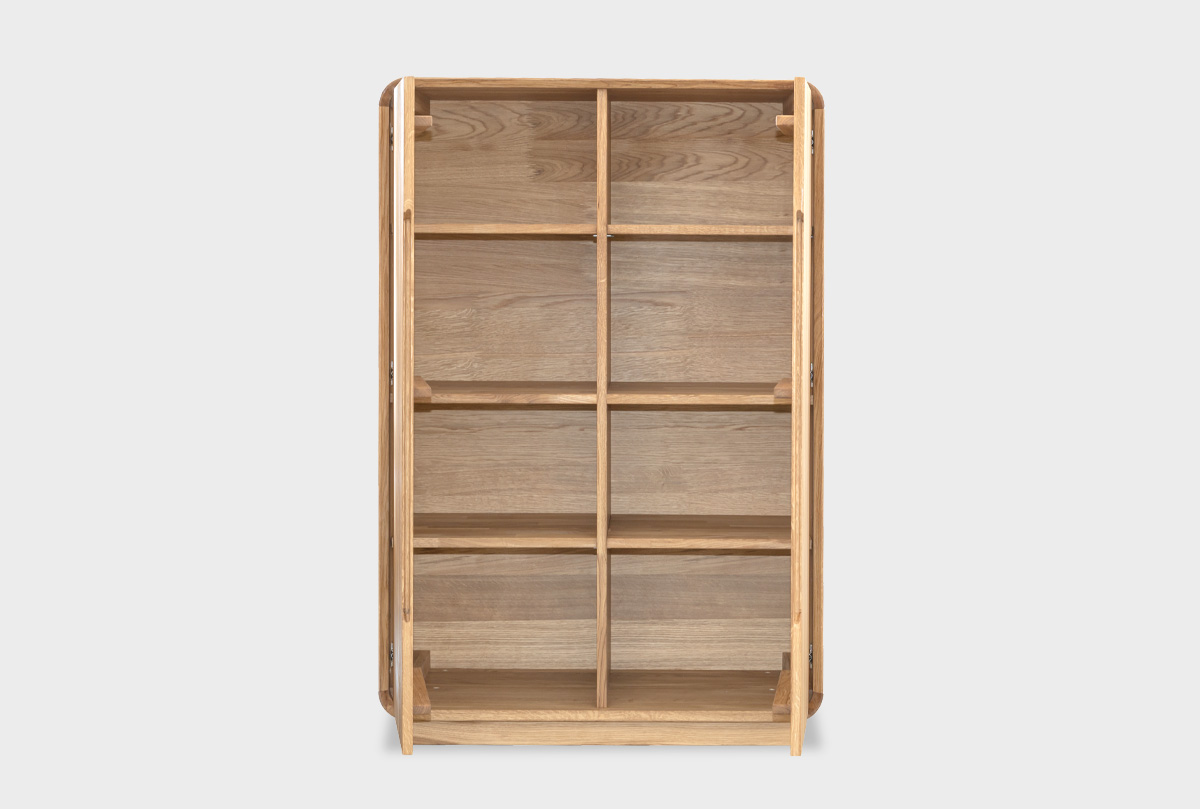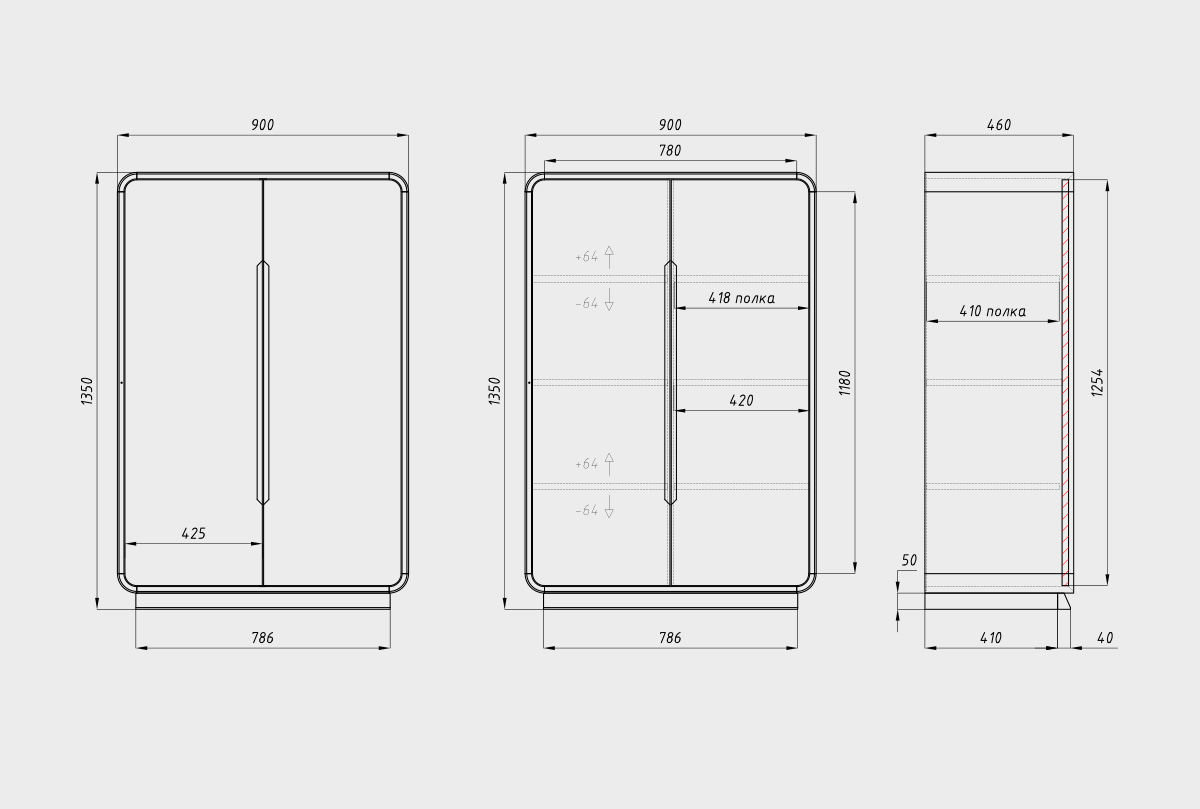✅ За спокойным фасадом скрывается внушительное внутреннее пространство, продуманное до мелочей: две симметричные секции, каждая с регулируемыми по высоте верхними и нижними полками глубиной 410 мм.