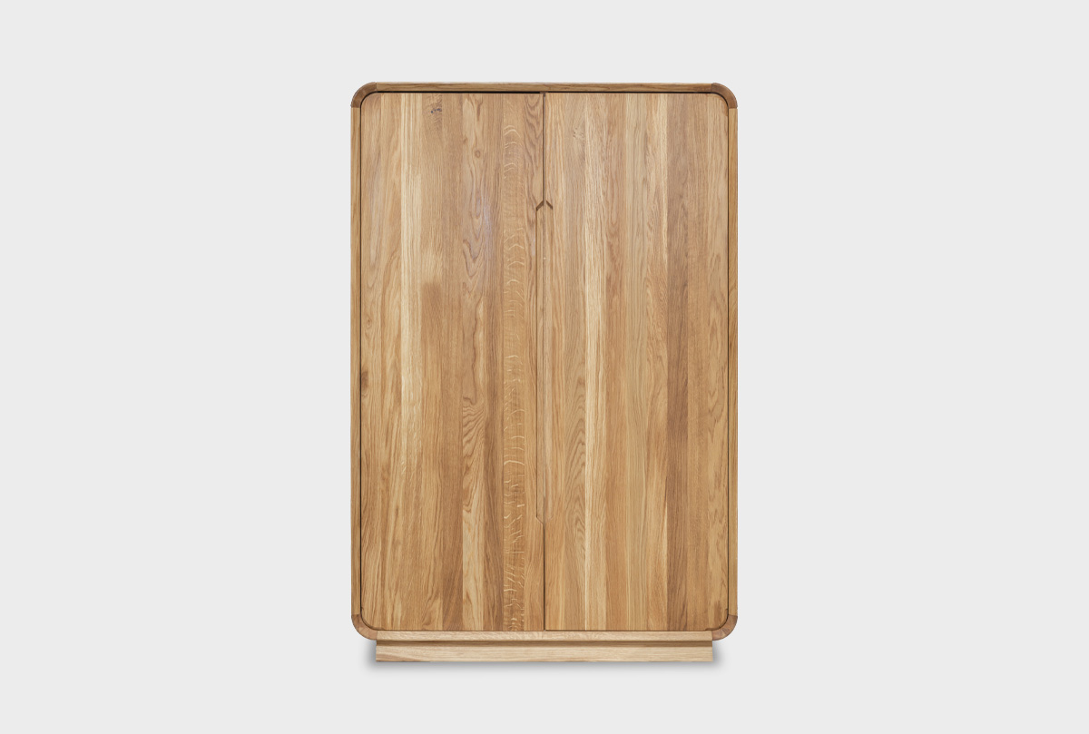 Высокая тумба «Монблан» в цвете «бейц-масло» — это воплощение элегантной функциональности, мягкая, без острых углов, с характерными скруглениями, которые визуально облегчают конструкцию и делают её особенно приятной для прикосновения. Утопленные ручки, встроенные в фасады, подчёркивают лаконичность и современный стиль.