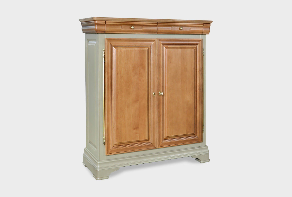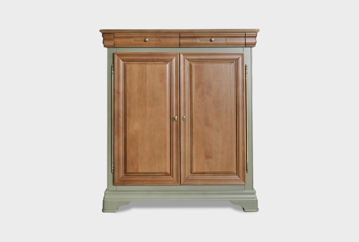 Высокая двухдверная тумба «Оливия» в цвете «олива» выполненна в классическом стиле из массива и шпона ольхи.