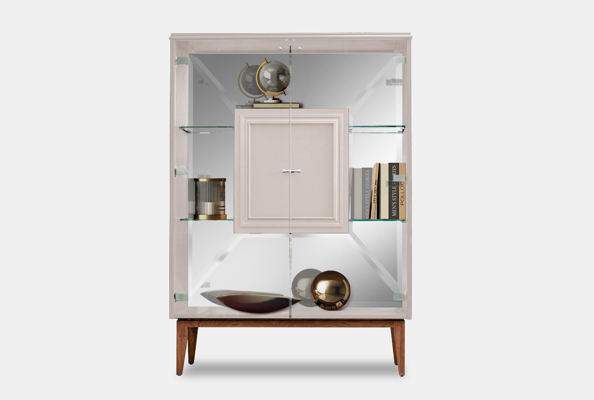 ✅ За двумя распашными дверцами расположены стеклянные полки.