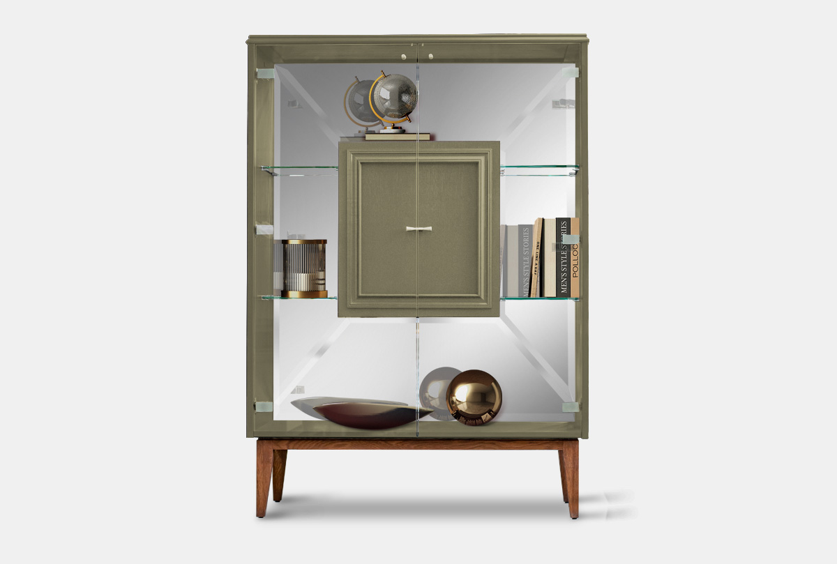 ✅ За двумя распашными дверцами расположены стеклянные полки.
