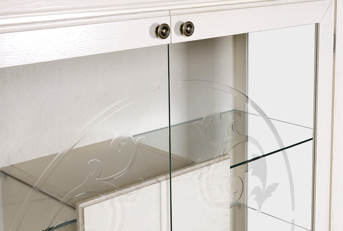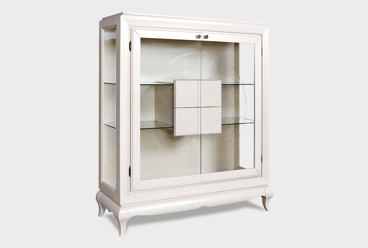 Роскошность и лаконичность прямых форм высокой тумбы «Соната» со стеклом в цвете «белая эмаль с темной патиной» сочетается с классическими изогнутыми ножками. Этот великолепный и функциональный предмет интерьера станет неотъемлемой частью любой из Ваших комнат.