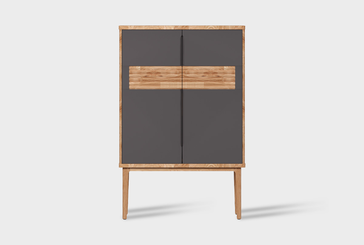 Высокая тумба Уоллстрит в цвете «к-бейц-масло, ф-антрацит, вст-бейц-масло» выполнена в современном стиле Лофт с сочетанием текстуры натурального дерева и акцентных вставок. Светлый оттенок изделия придаст помещению атмосферу упорядоченности и спокойствия. Высокая тумба идеально подходит для гостиной и спальни.