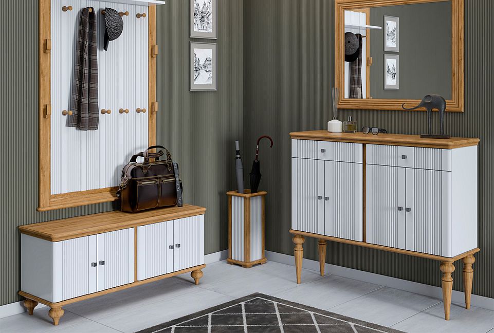 Вешалка настенная «Рандеву» 160 в цвете «серый 7042+антик 24». Размеры (ШxВxГ) 970 x 1642 x 40 мм. Классическая настенная вешалка из коллекции «Рандеву» - практичное приобретение для небольшой прихожей. Оснащена восемью крепкими крючками и зеркалом. Может использоваться в комплекте с другими подходящими по стилю предметами мебели или как отдельный элемент.