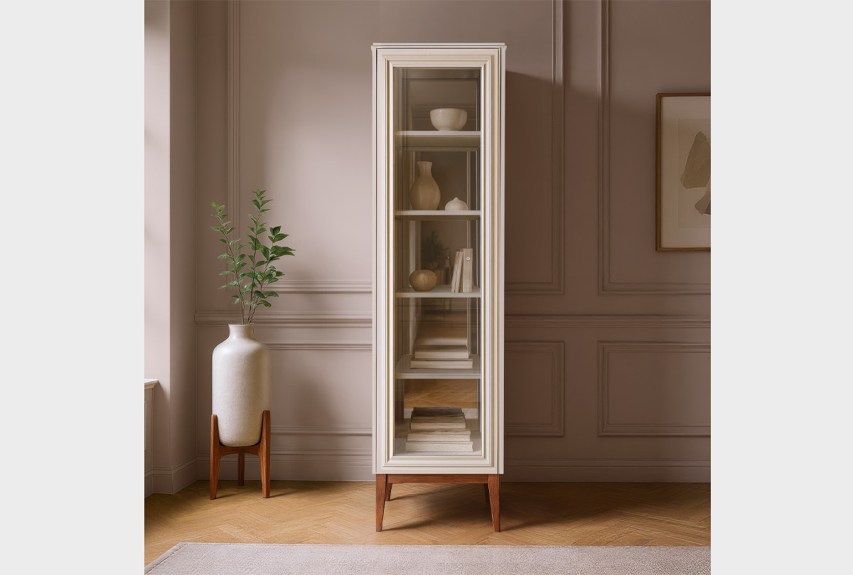 Однодверная левая витрина «Сакраменто» в цвете «марципан, орех» в стиле американской классики – идеальное решение для вашей гостиной.