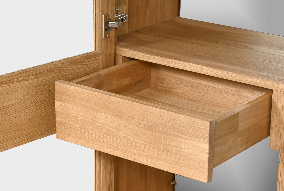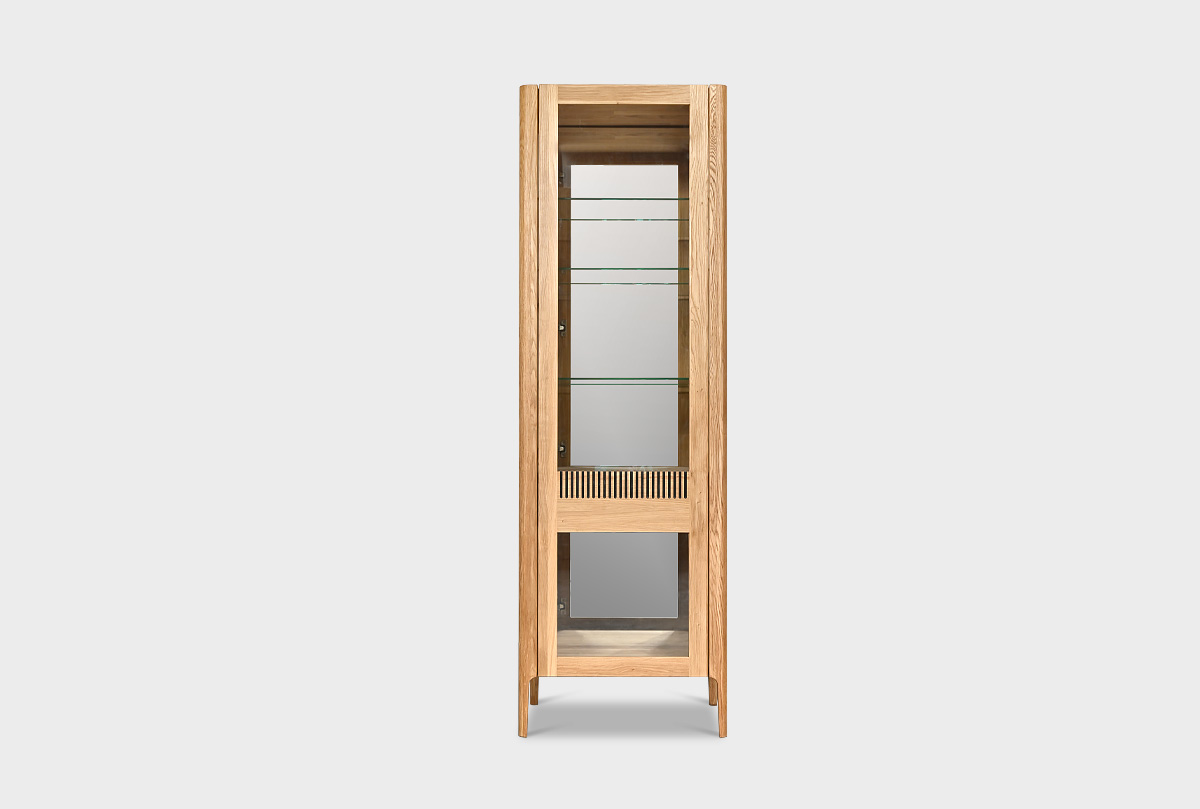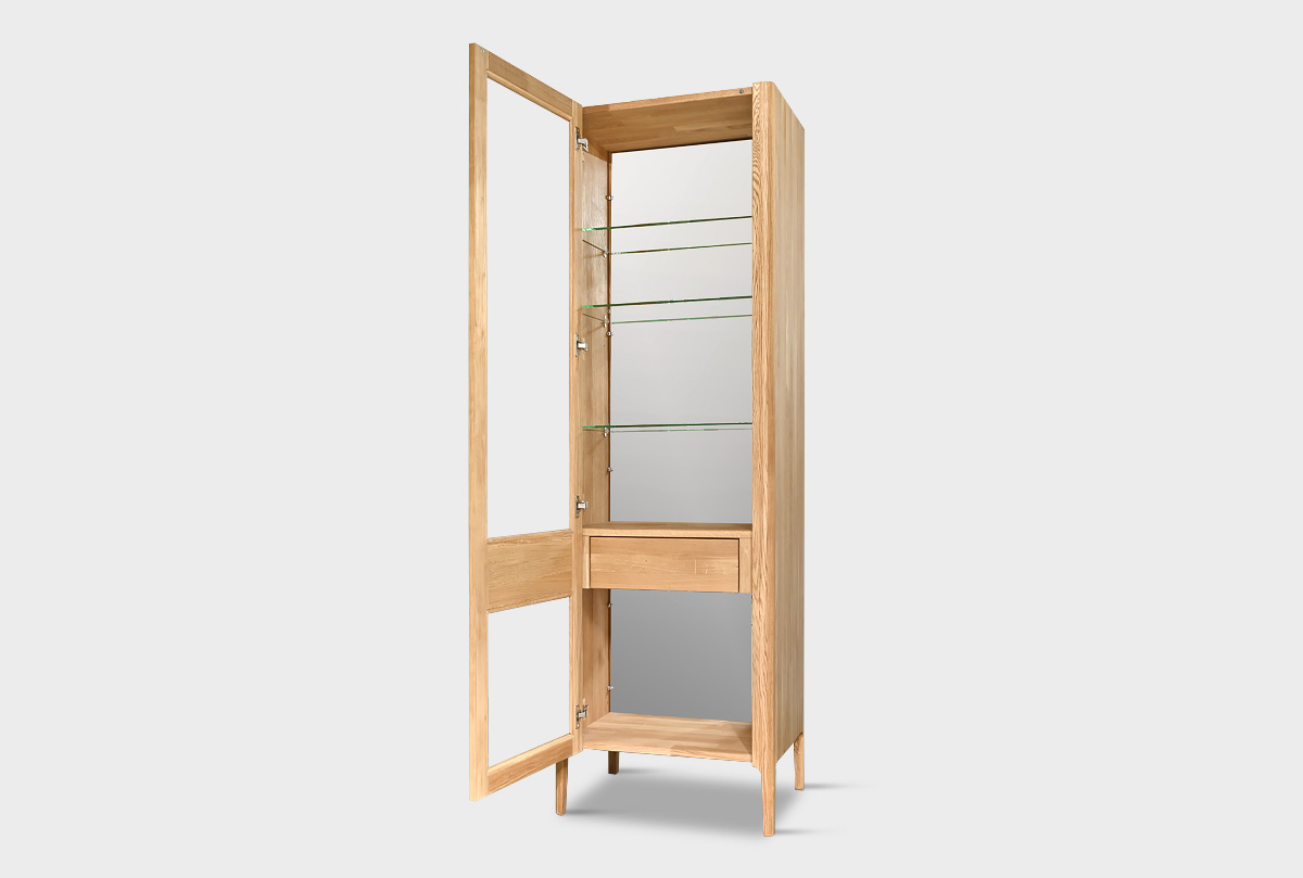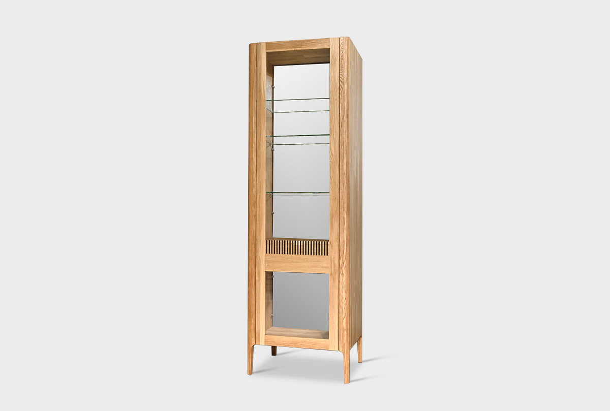 Особенности левой однодверной витрины «Бергамо» в цвете «дуб натуральный»: