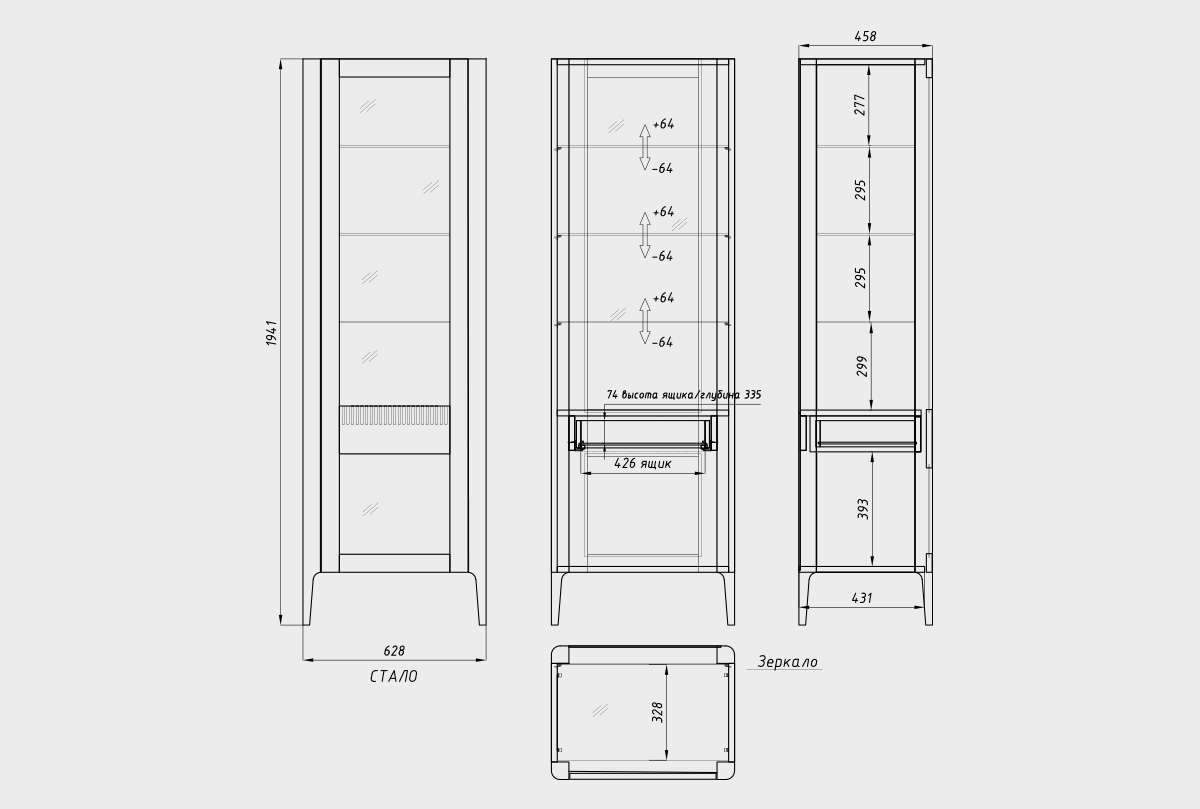 ✅ Высокие изящные ножки в сочетании с утопленными столешницами изделий создают эффект пространственной легкости.