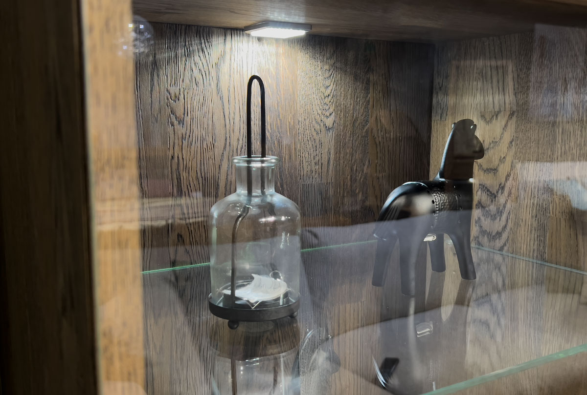 ✅ Витрина оснащена подсветкой, которая создаёт мягкое освещение, подчёркивая содержимое и добавляет атмосферности.