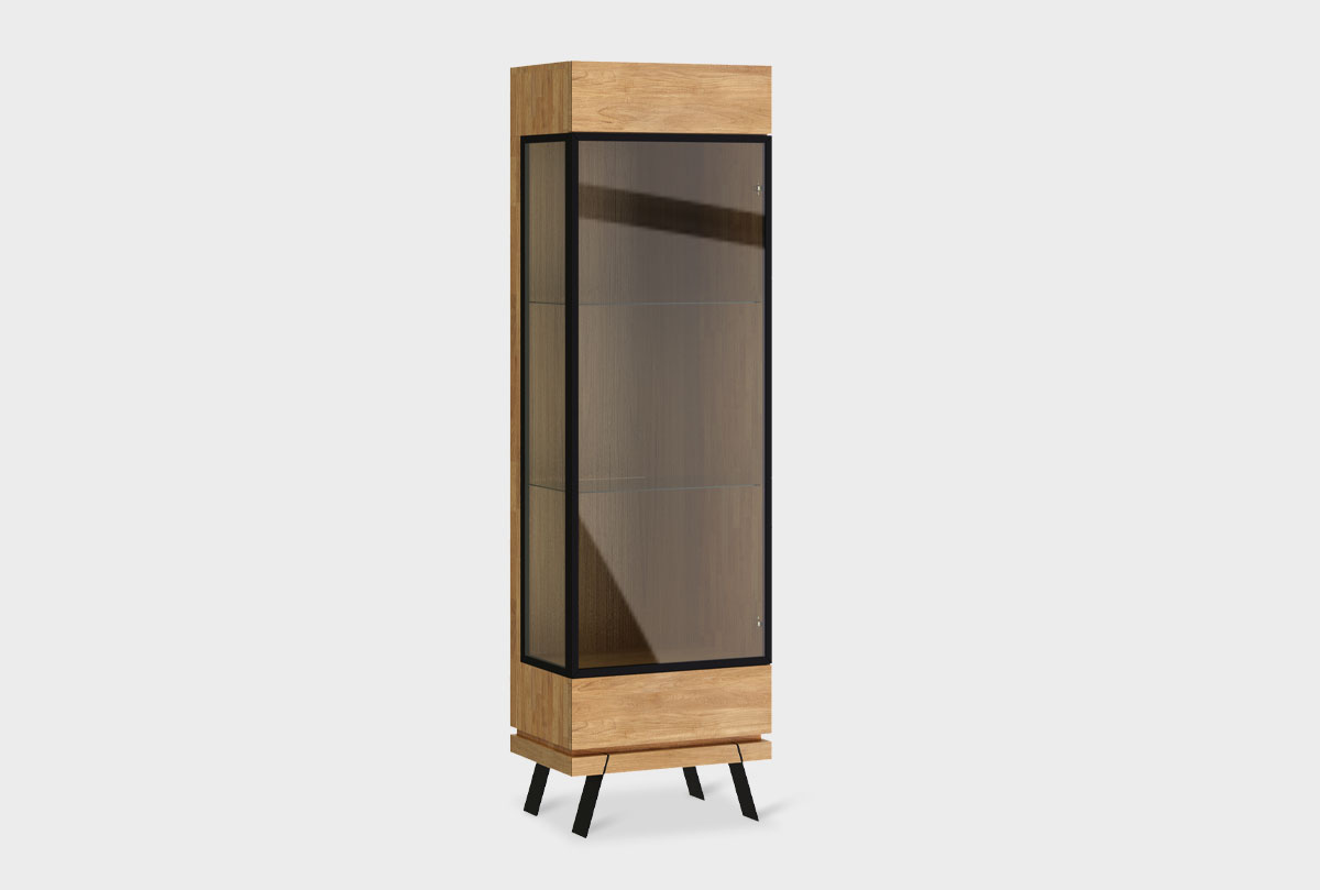 Правая однодверная витрина «Этна» без декора из дуба в цвете дуб натуральный в стиле Лофт.