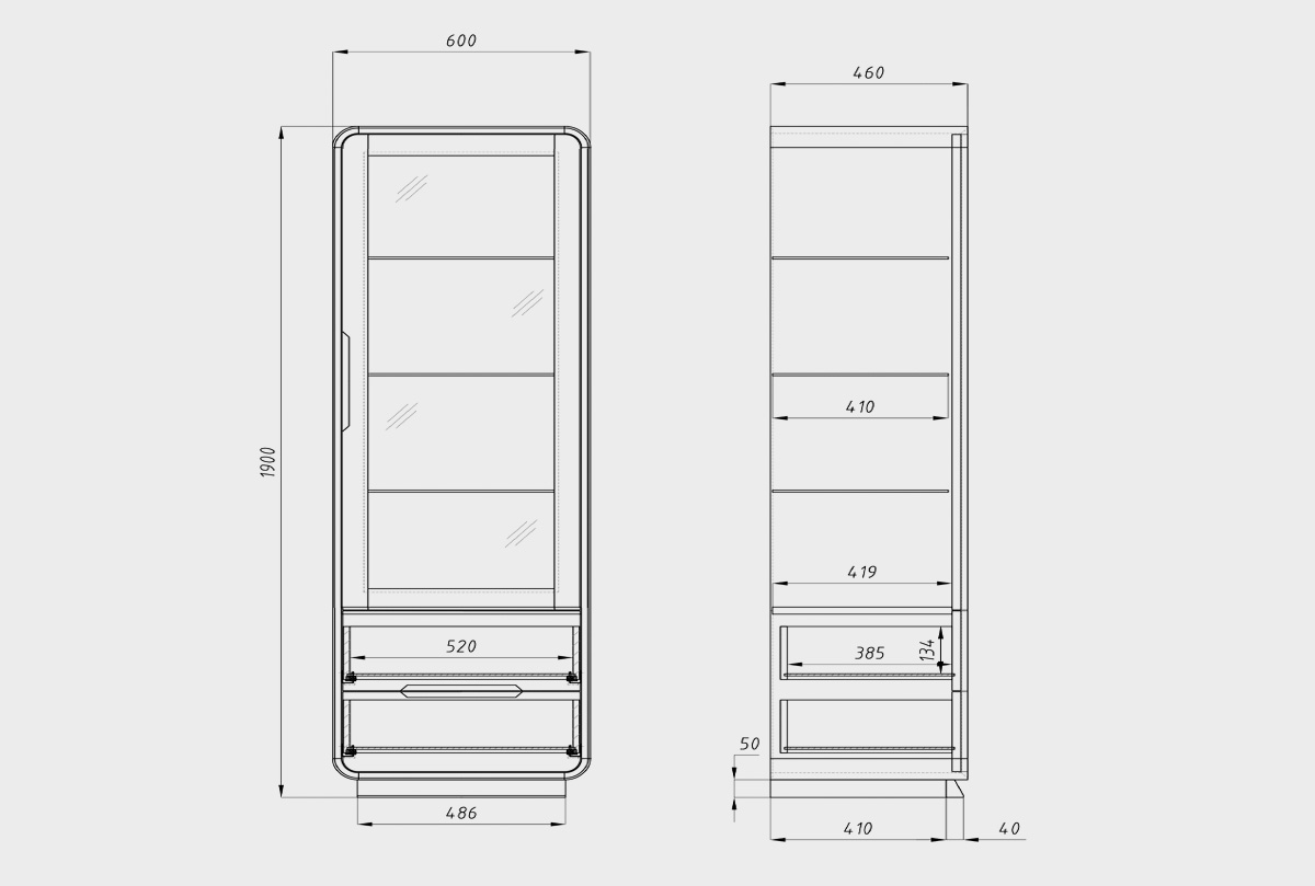 ✅ Размеры: ширина — 600 мм, высота — 1900 мм, глубина — 460 мм.