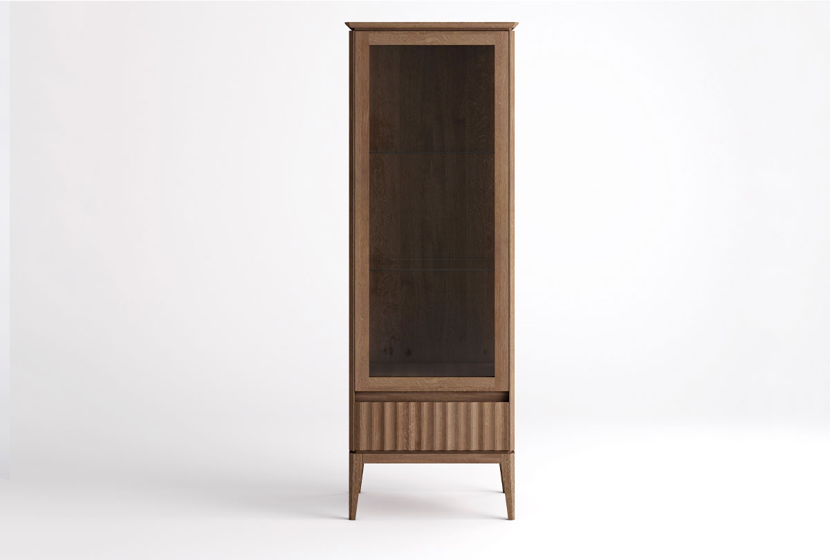 Витрина 1-но дверная "Патриция" (левая) из массива дуба, с подсветкой, для Вашей гостиной в стиле Лофт