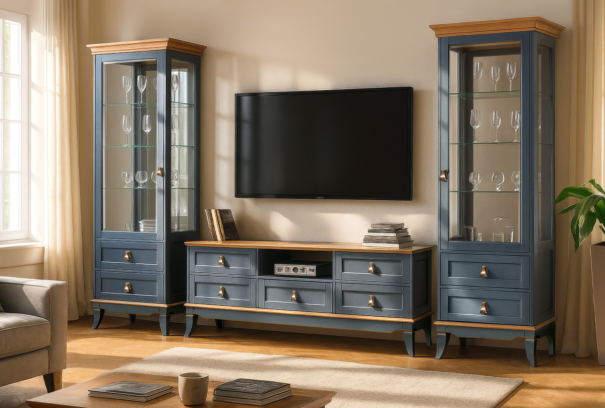 ✅ Сочетание глубоких матовых эмалевых крашений с глянцевыми элементами оттенка натурального дуба.