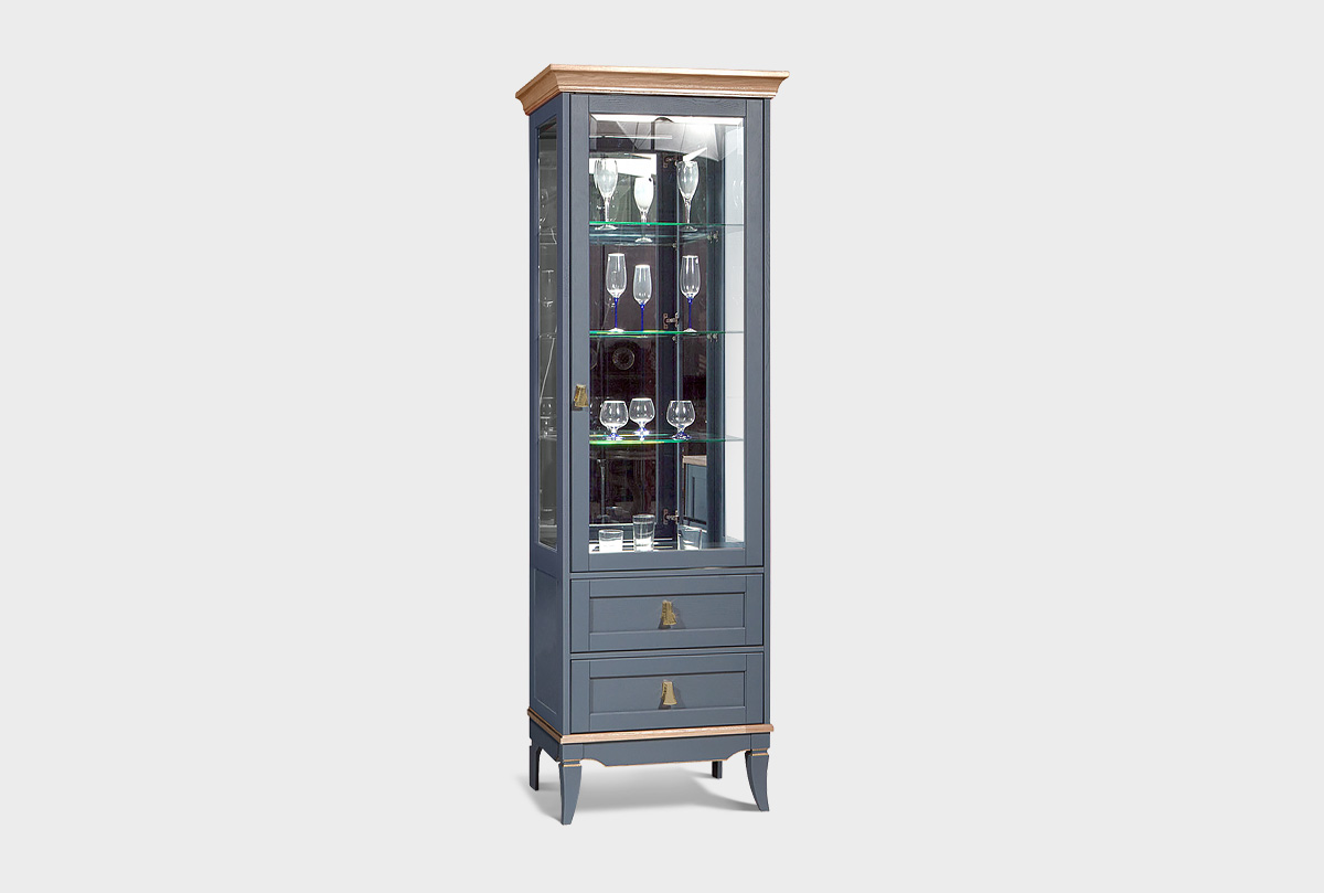Однодверная правая витрина «Стюарт» в классическом стиле, в цвете "марено, натуральный дуб".