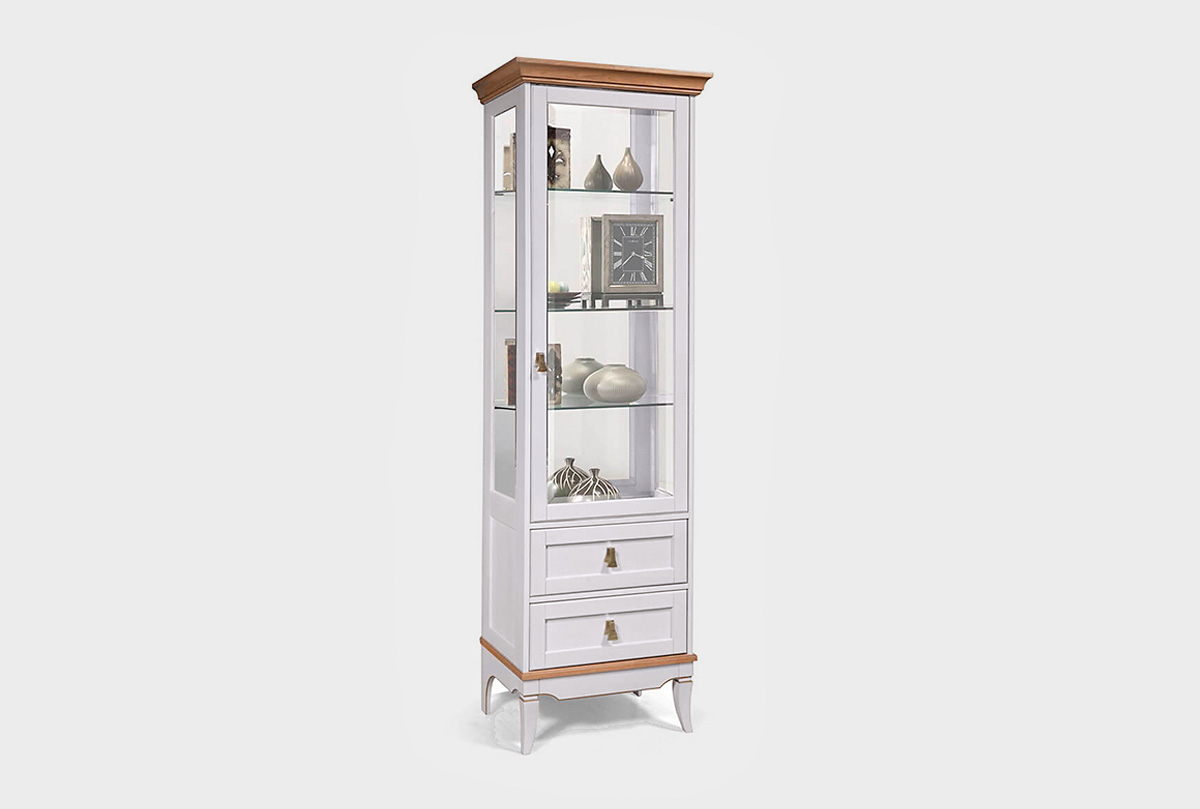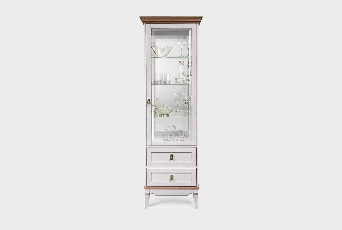 Однодверная правая витрина «Стюарт» в классическом стиле, в цвете "дуб белый, натуральный дуб".