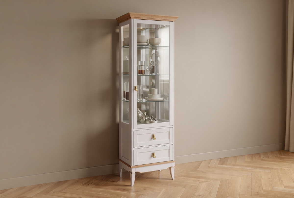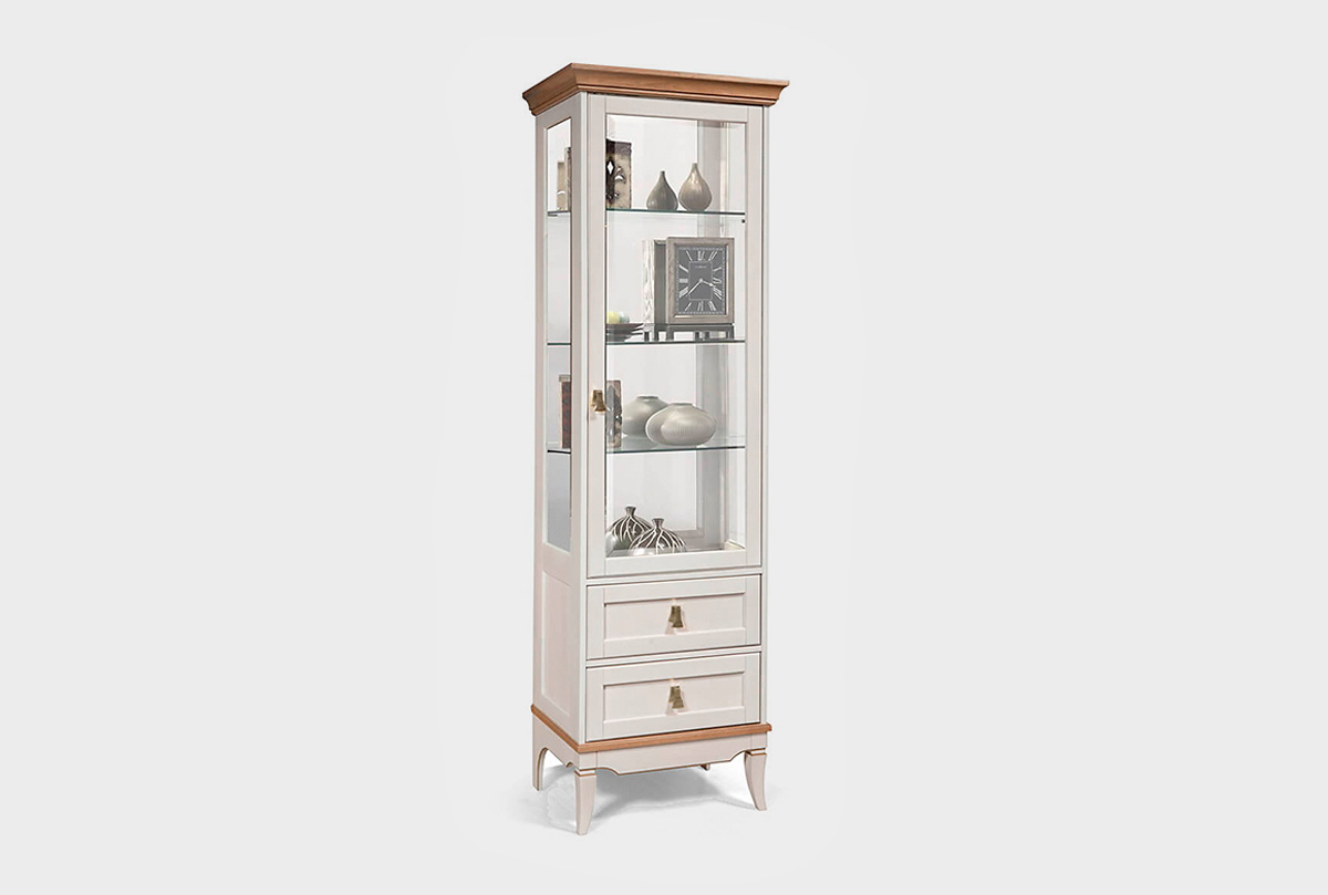 Однодверная правая витрина «Стюарт» в классическом стиле, в цвете "персидский жемчуг, натуральный дуб".