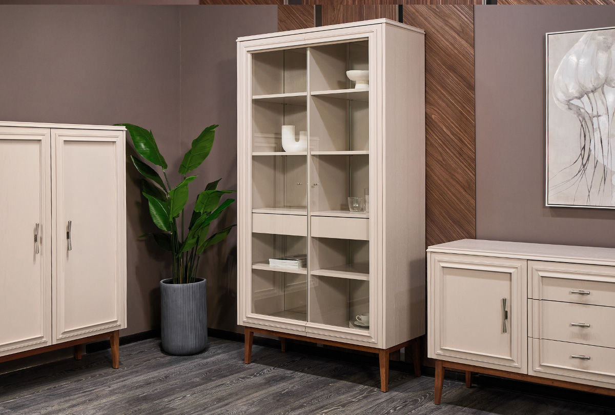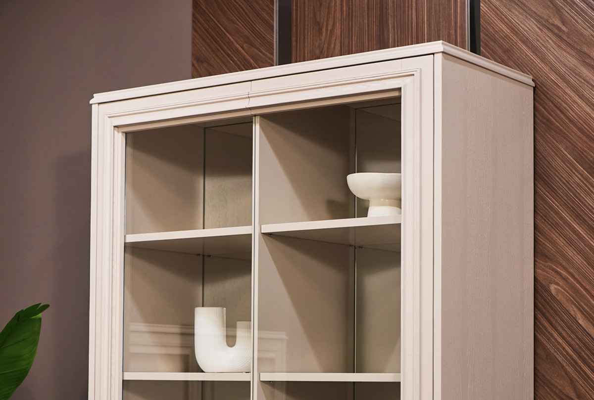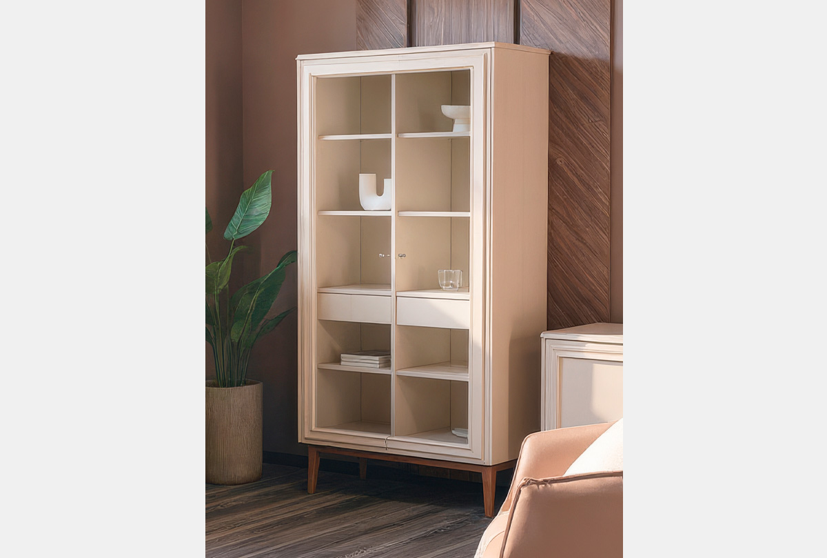 Вместительная двухдверная витрина «Сакраменто» в цвете «марципан, орех» в стиле американской классики – идеальное решение для вашей гостиной.
