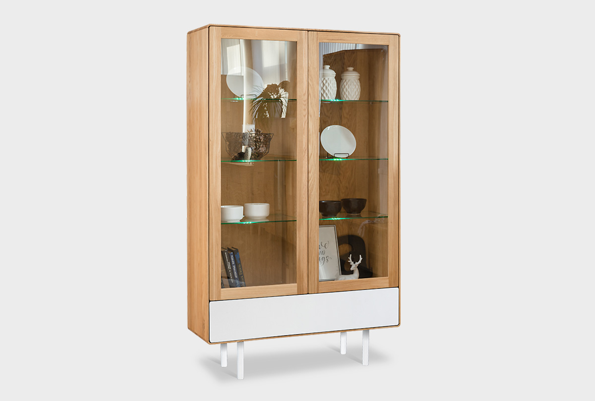 Витрина 2-х дверная "Норман", дуб натуральный, белый, 1 ящик, (.Г000073645)